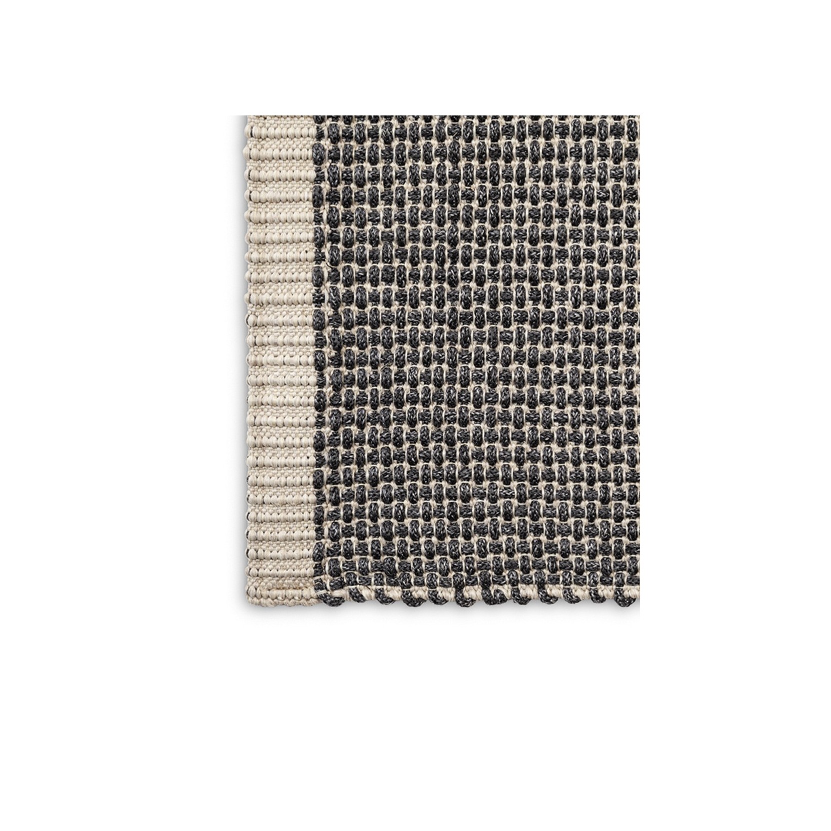 Il tappeto Grand Vizier è disponibile nelle dimensioni standard di 200x300 cm, ma su richiesta è possibile realizzare tappeti su misura, con larghezza massima di 500 cm e lunghezza massima di 1500 cm. Composto al 100% da fibre di polipropilene trattate con un trattamento "UV resistant", questo tappeto si distingue per un intreccio a croce, realizzato con corda di polipropilene a sezione circolare. Il lato corto è rifinito con un bordo ornamentale di 6 cm. Le tonalità del tappeto, caratterizzate dall'intreccio di due filati di colore diverso, variano tra il Dark Grey e il Light Grey, con la tonalità dominante determinata dalla prevalenza di un filato sull'altro. Il tappeto ha uno spessore di circa 12 mm e un peso di 2,5 kg/m². Il logo Poltrona Frau® è visibile su un'etichetta in tessuto cucita in un angolo.