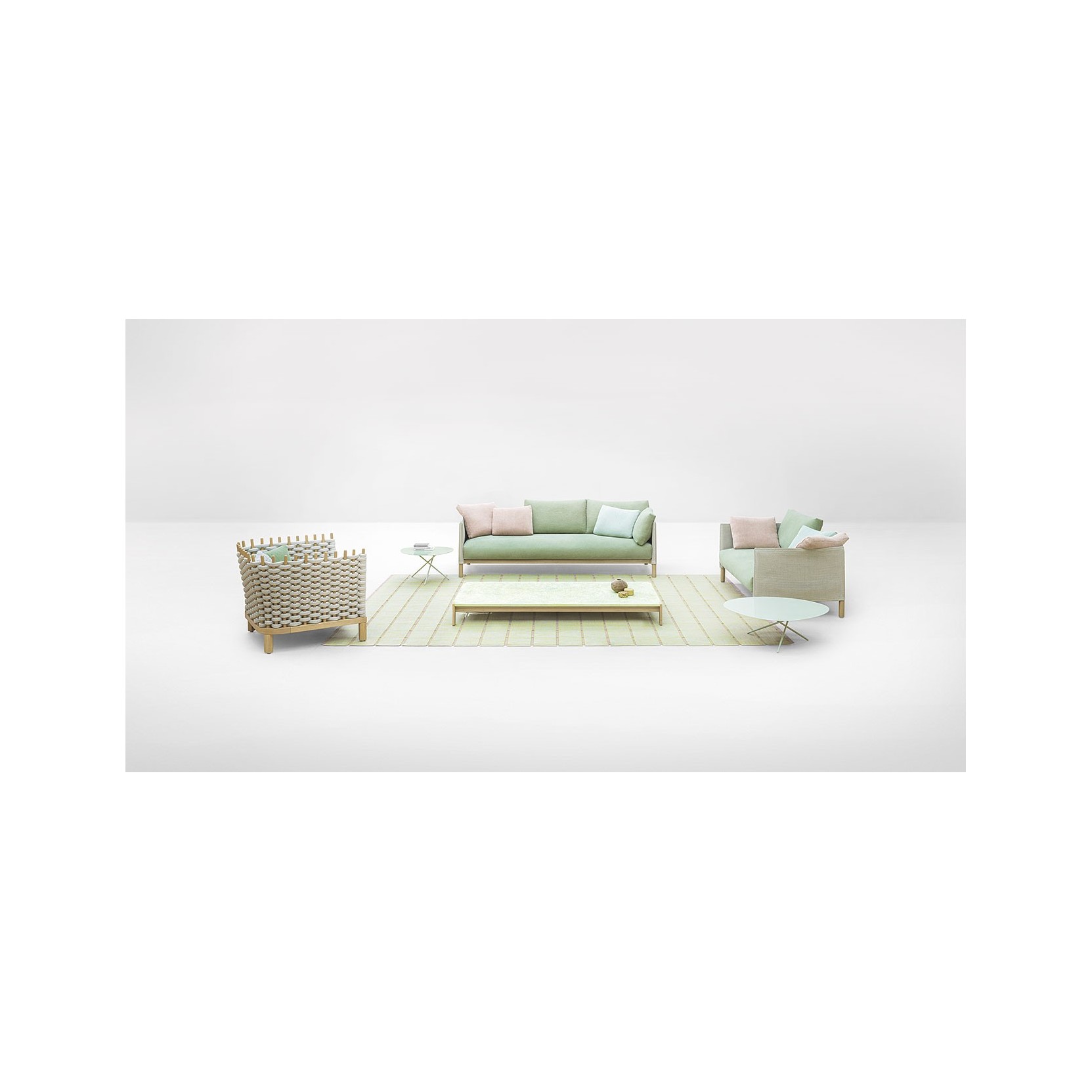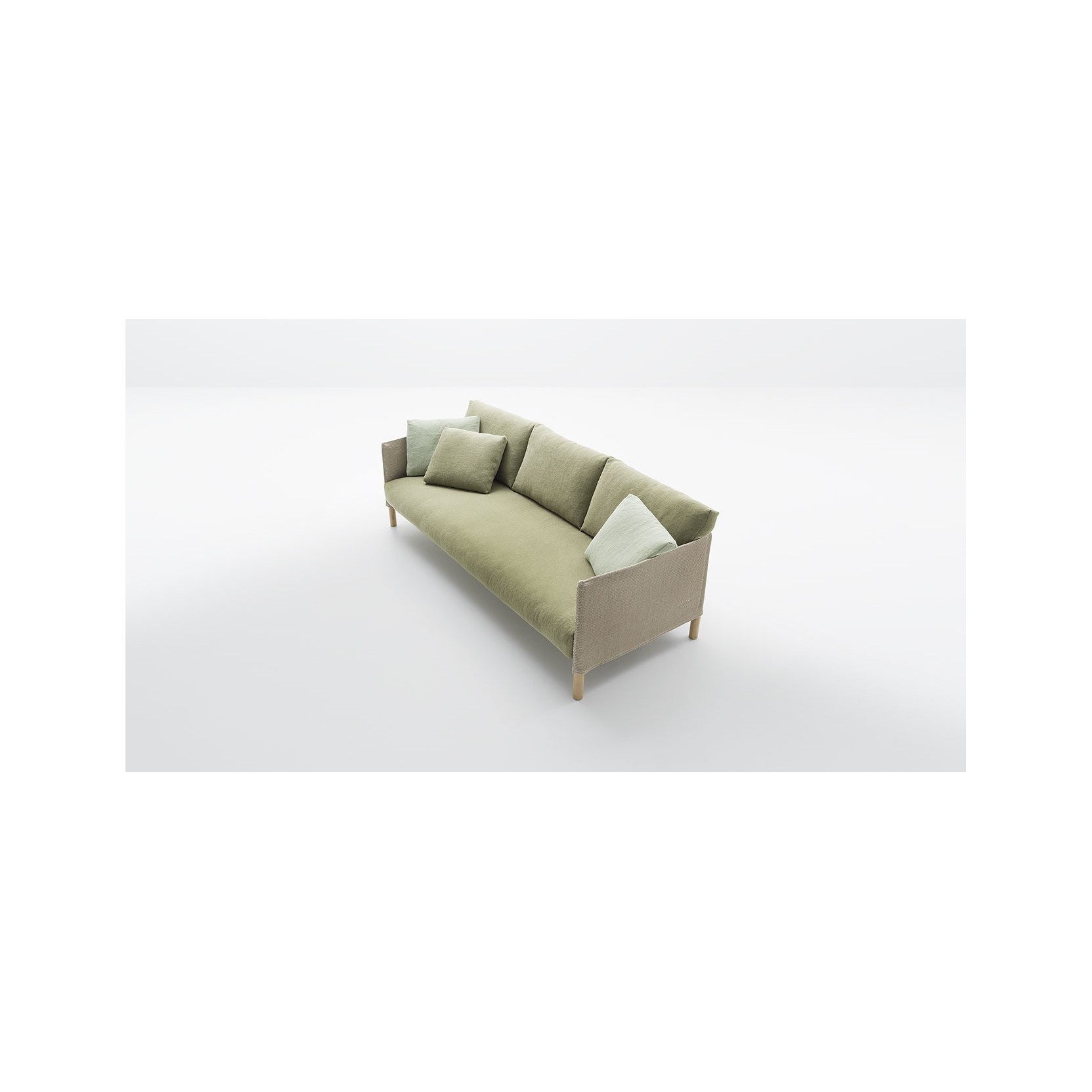 La serie Vespucci comprende divani a due e tre posti e una poltrona, tutti realizzati con materiali naturali della collezione Eres, adatti all’uso esterno purché protetti da esposizioni dirette alle intemperie e soggetti a cure più attente rispetto all’arredo da esterno tradizionale. È importante che questi prodotti siano collocati sotto coperture stabili, coperti durante la notte e preferibilmente conservati in ambienti chiusi quando non utilizzati. Nel tempo i materiali maturano naturalmente, modificando aspetto e colore.