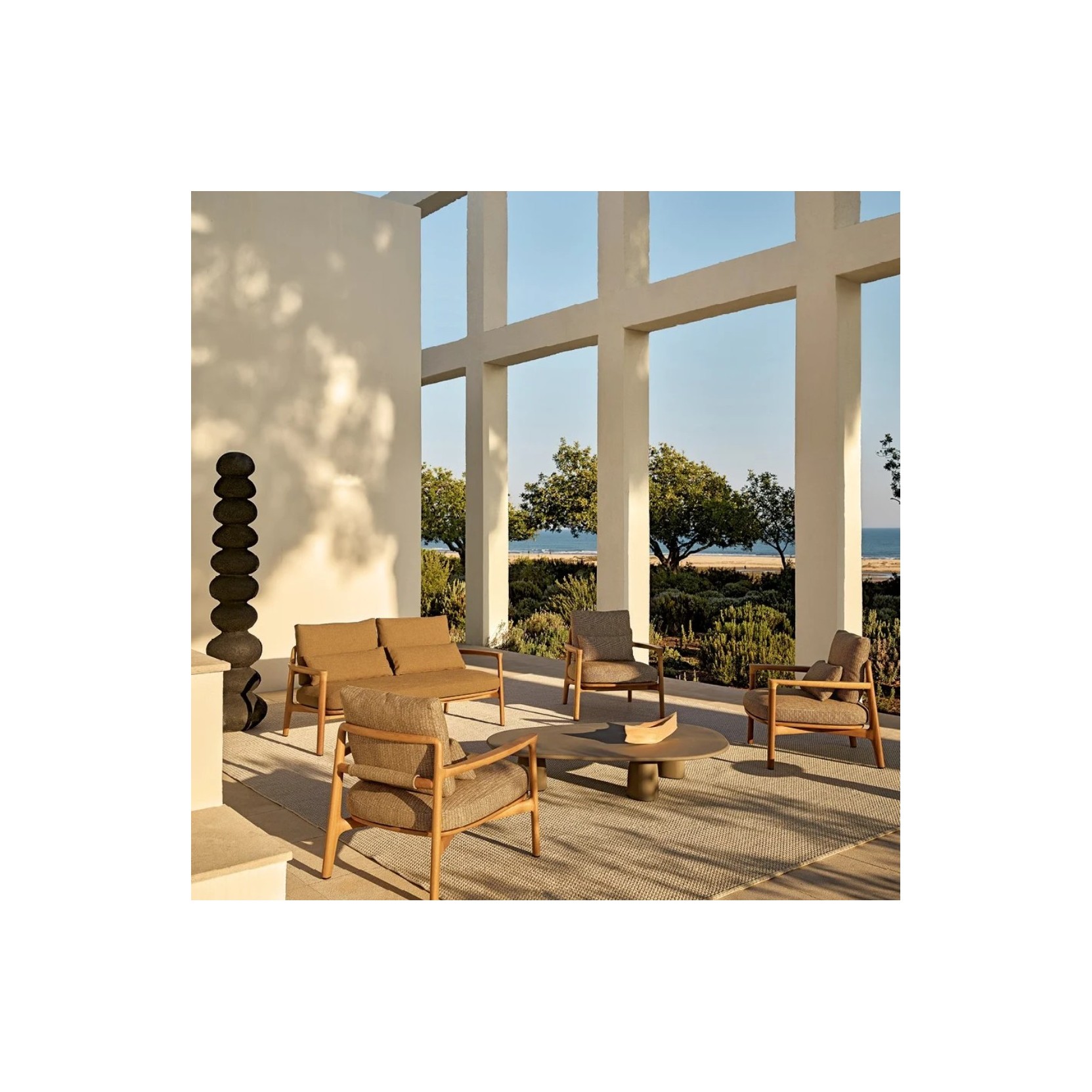 Il divano outdoor Magnolia, progettato da Emmanuel Gallina, rappresenta l’eleganza e la funzionalità per gli spazi esterni. La sua struttura in legno massello unisce solidità e raffinatezza, mentre la seduta, composta da un mix di poliestere riciclato PET e poliuretano, garantisce comfort e sostenibilità. Il pre-rivestimento in fibra di poliestere, cucito termicamente, conferisce un ulteriore livello di resistenza, mentre il rivestimento finale in tessuto sfoderabile permette di personalizzare il divano in base alle esigenze estetiche e pratiche. Il cuscino salvareni in poliestere riciclato PET completa l’offerta, combinando attenzione al dettaglio e rispetto per l’ambiente, creando un pezzo che si integra armoniosamente con l’ambiente esterno, perfetto per momenti di relax e convivialità.