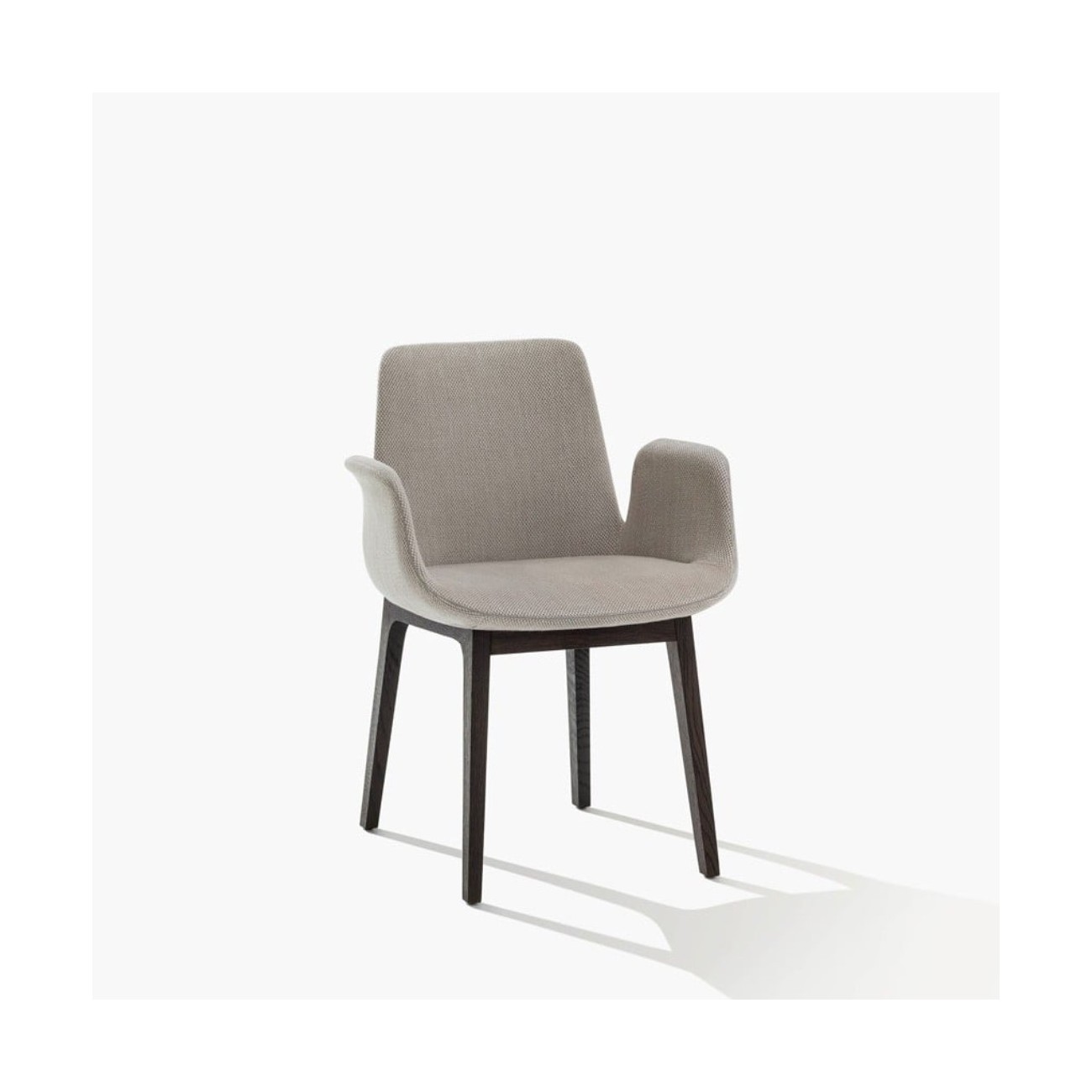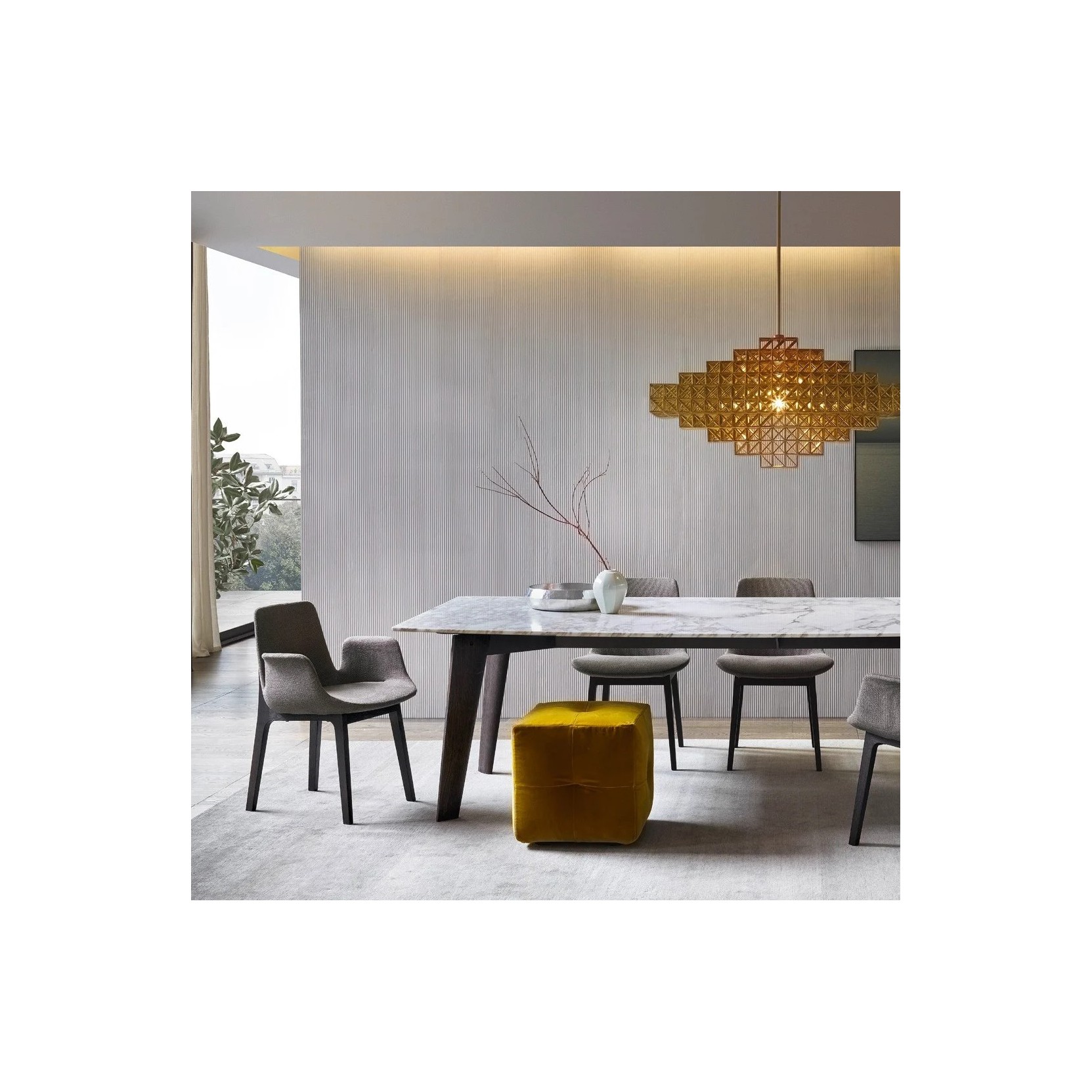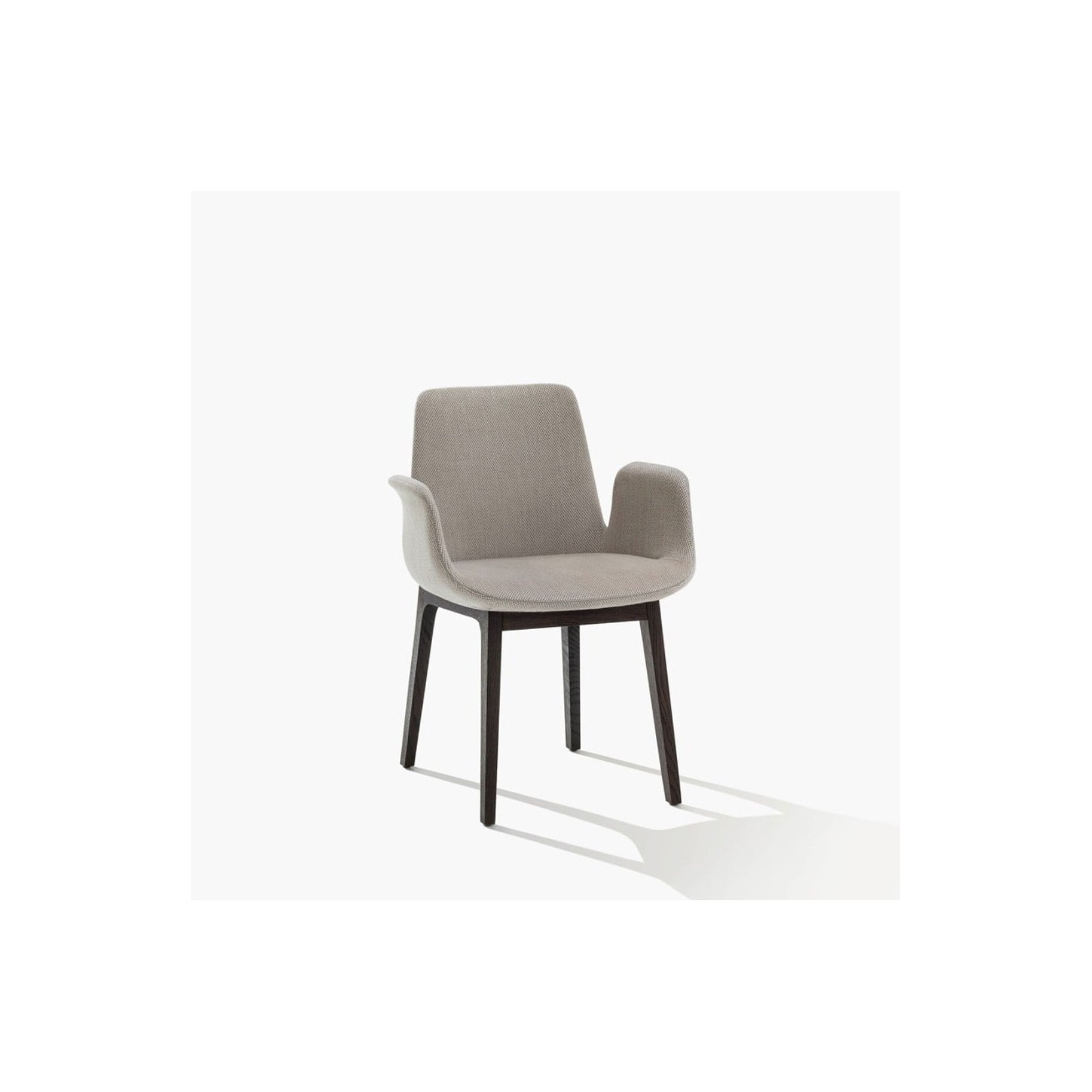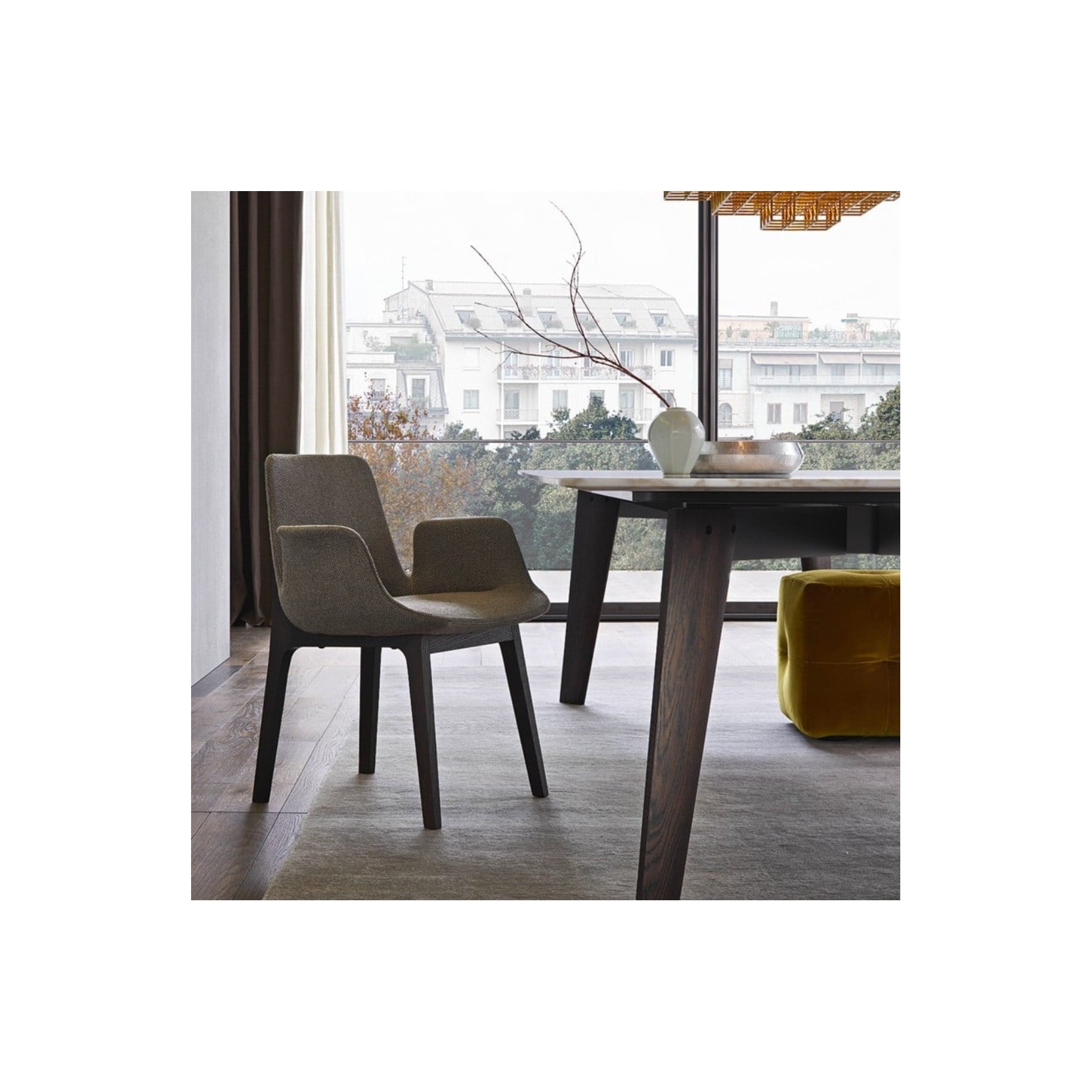 La sedia Ventura si distingue per la particolare giunzione tra schienale e braccioli, un dettaglio di raffinata eleganza che conferisce carattere e sensualità. In perfetto equilibrio tra comfort e stile, Ventura è disponibile con struttura in legno e, nella versione con struttura in metallo, in tutti i colori laccati opachi, da abbinare a rivestimenti in tessuto o pelle.