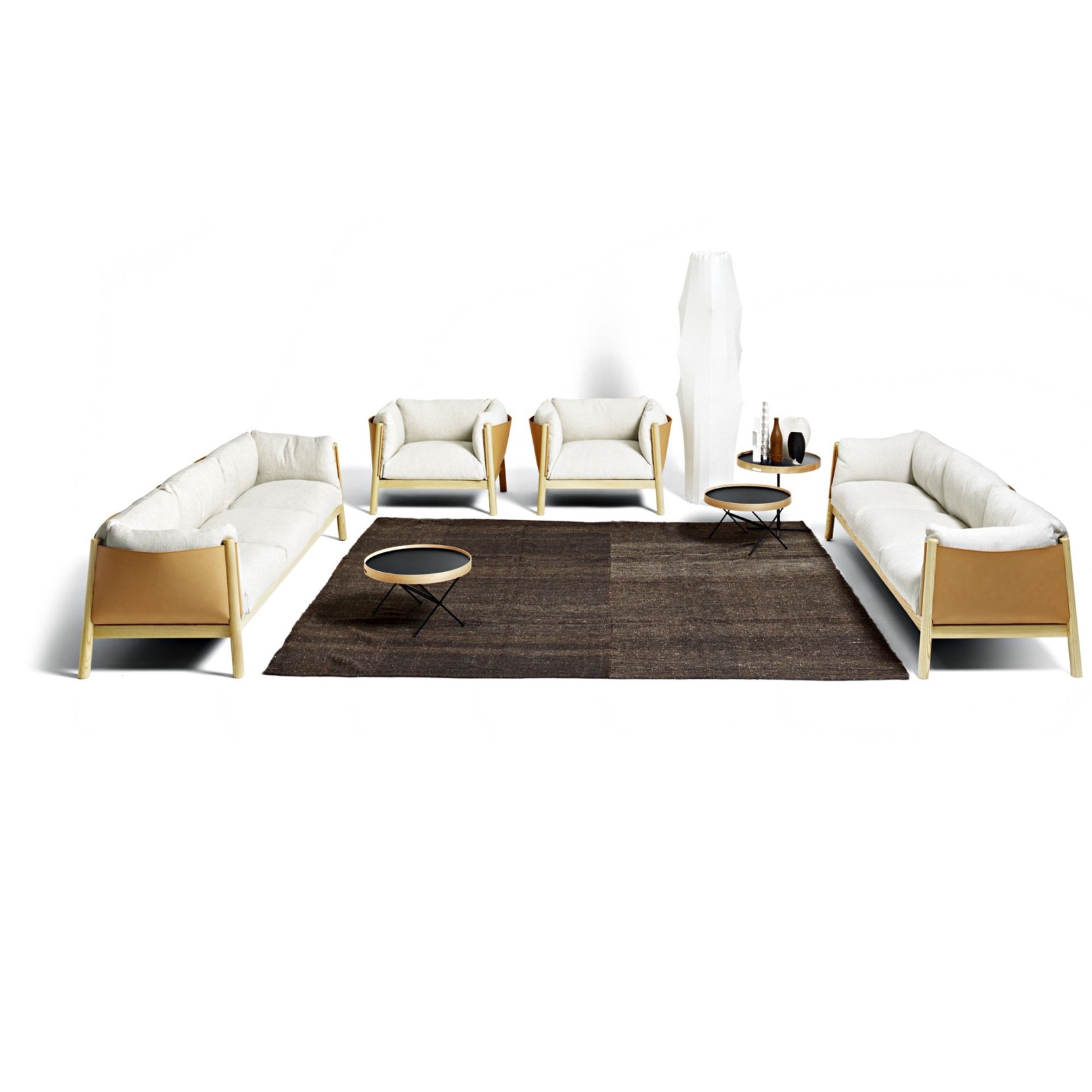 MISURE Larghezza 112 cm Profondità 92 cm Altezza 82 cm MATERIALI E FINITURE Struttura in legno massello di frassino in diverse finiture Braccioli e schienale in cuoio pieno fiore, finitura naturale Piedini regolabili in termoplastica