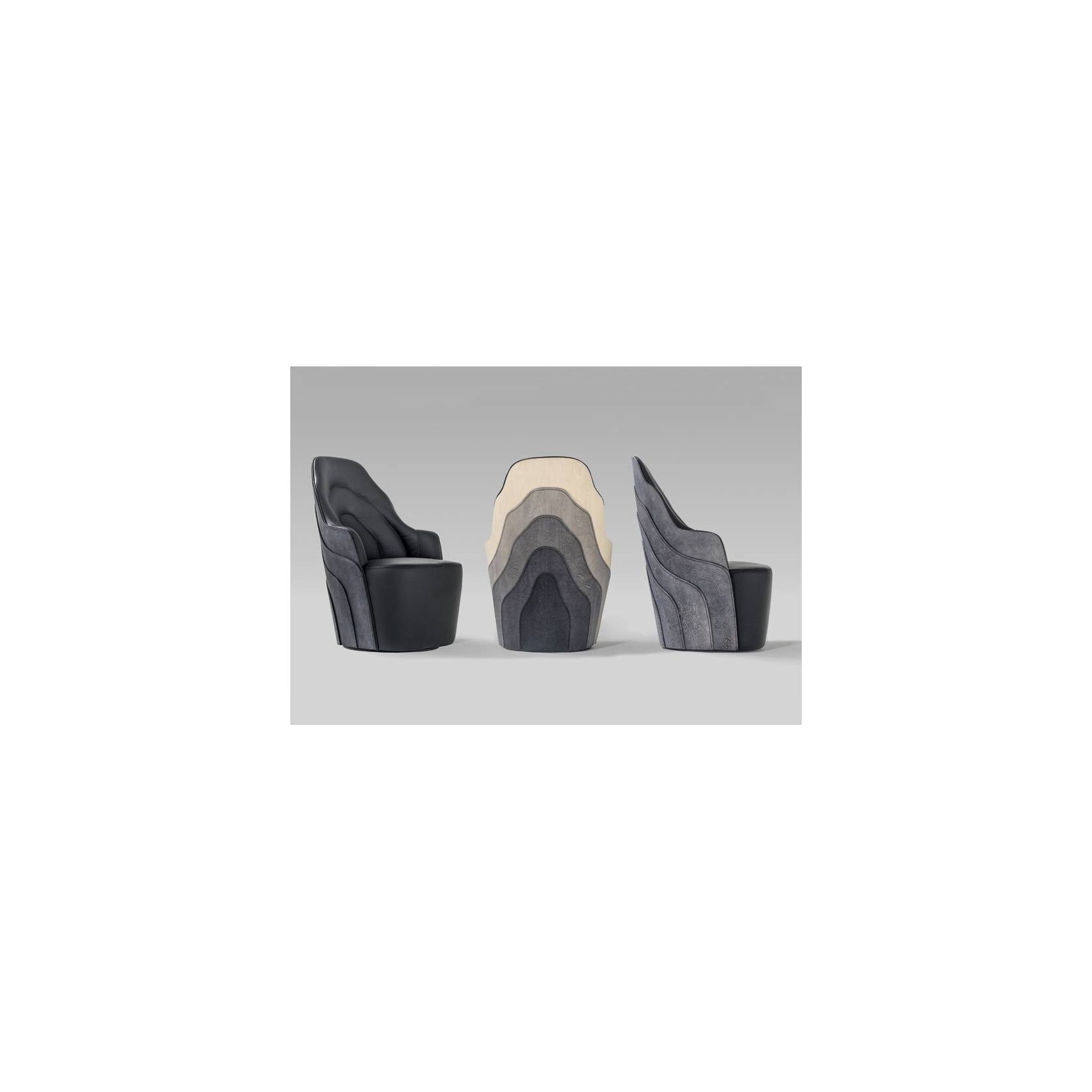 La Poltrona Couture è una fusione di tecniche artigianali e industriali. I punti rappresentano una mappa topografica che dà luogo ad un modello organico, simulando la crescita del legno. L'uso di colori sfumati per il legno, amplifica l'effetto degli strati utilizzati e aumenta la sensazione di unificare i materiali duri. Il risultato è una poltrona dalla forte personalità che racchiude la massima evidenza dei processi artigianali.