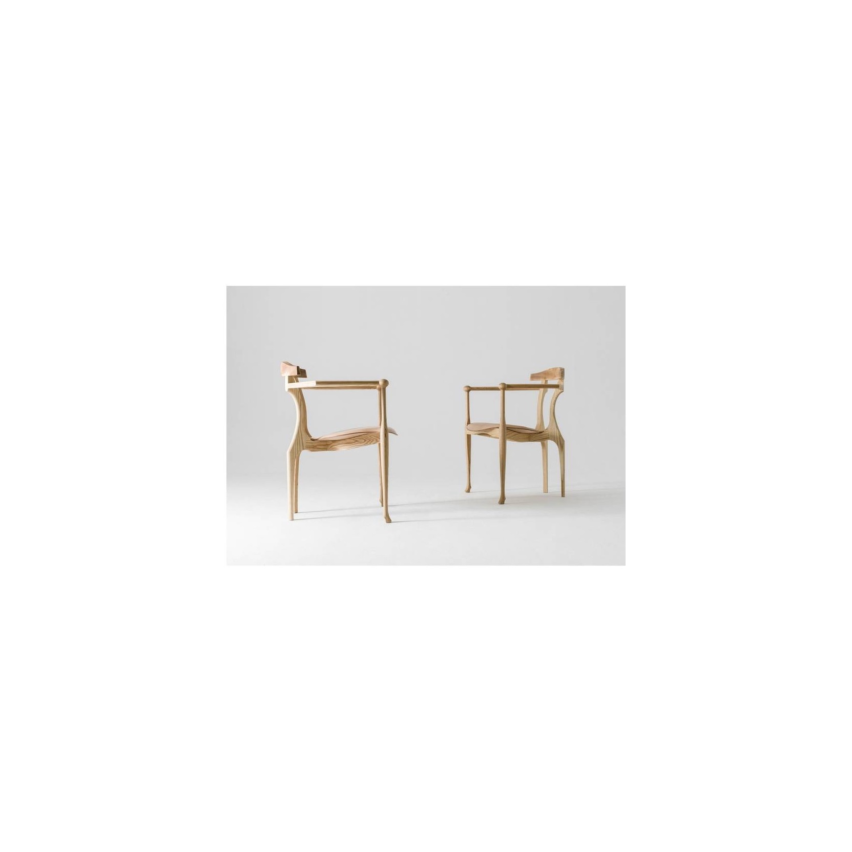 Dimensioni 70 x 55 x h.76 cm Struttura in frassino massello (legno) verniciato naturale o laccato a poro aperto nero. Sedile in multistrato rivestito in pelle di colore naturale o nero.