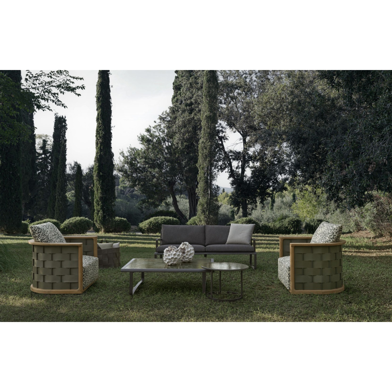La poltrona della Collezione Landmark è un pezzo che esprime la fusione tra design iconico e comfort avvolgente. La struttura in massello di teak, caratterizzata da linee curve e avvolgenti, richiama l’essenza naturale e sofisticata del legno, mentre il motivo intrecciato trama-ordito in macro-scala è riproposto con proporzioni più compatte che accentuano la sua espressività. Il design curvilineo dello schienale avvolge l'utente come un abbraccio, offrendo un comfort protettivo e accogliente. La poltrona è completata da un pouf in teak con cuscino in poliuretano, progettato per garantire un sostegno ottimale e il massimo del relax. Perfetta per spazi interni ed esterni, la poltrona è realizzata con materiali resistenti e può essere facilmente mantenuta grazie ai rivestimenti sfoderabili e alle cover idrorepellenti disponibili.