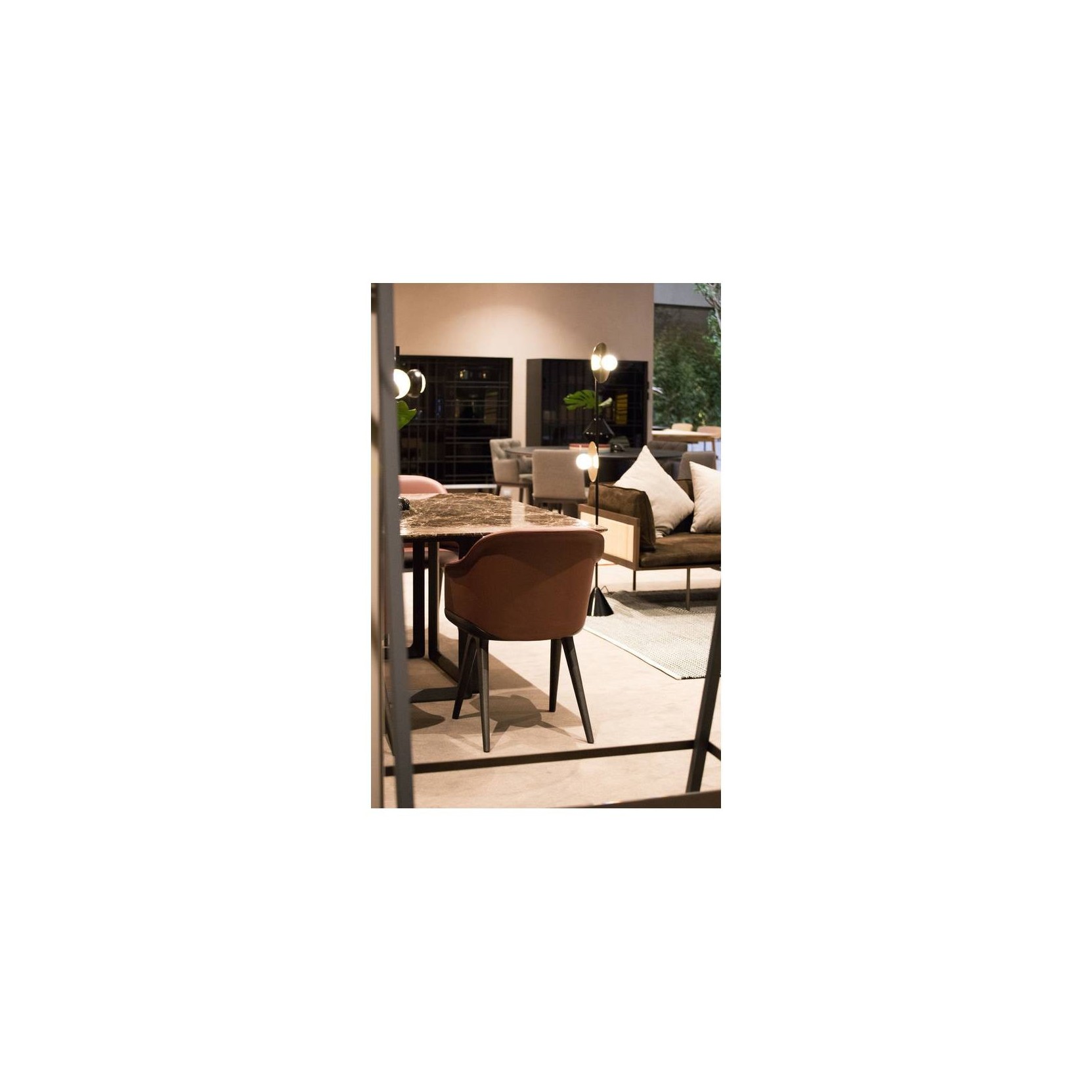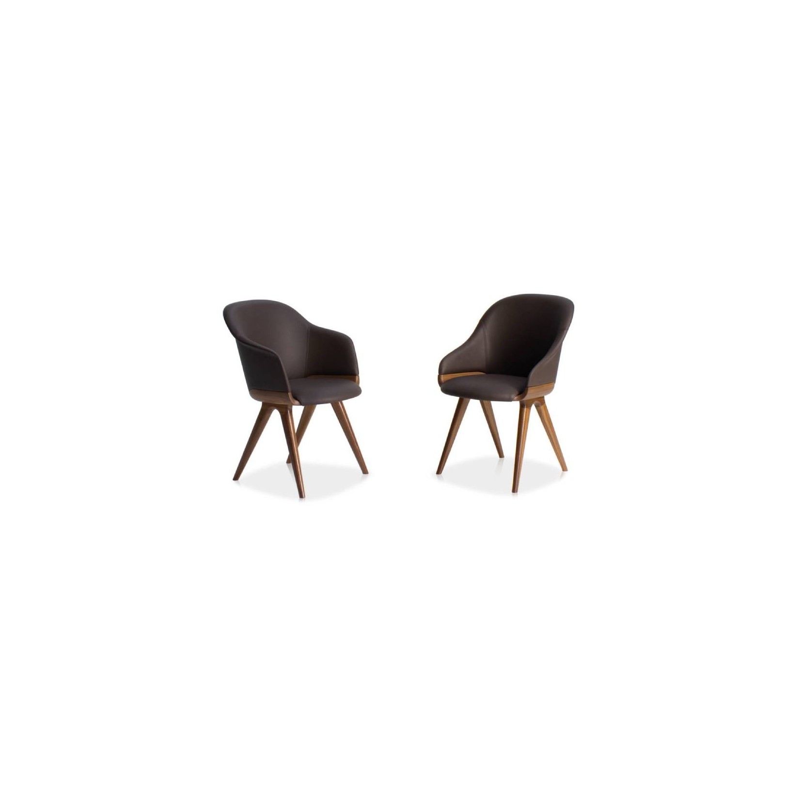 MATERIALI E FINITURE: Sedia e poltroncina con seduta e schienale imbottiti in poliuretano espanso ignifugo, disponibile nelle versioni fissa e girevole. Struttura in frassino o noce Canaletto. Finiture e rivestimenti di collezione.