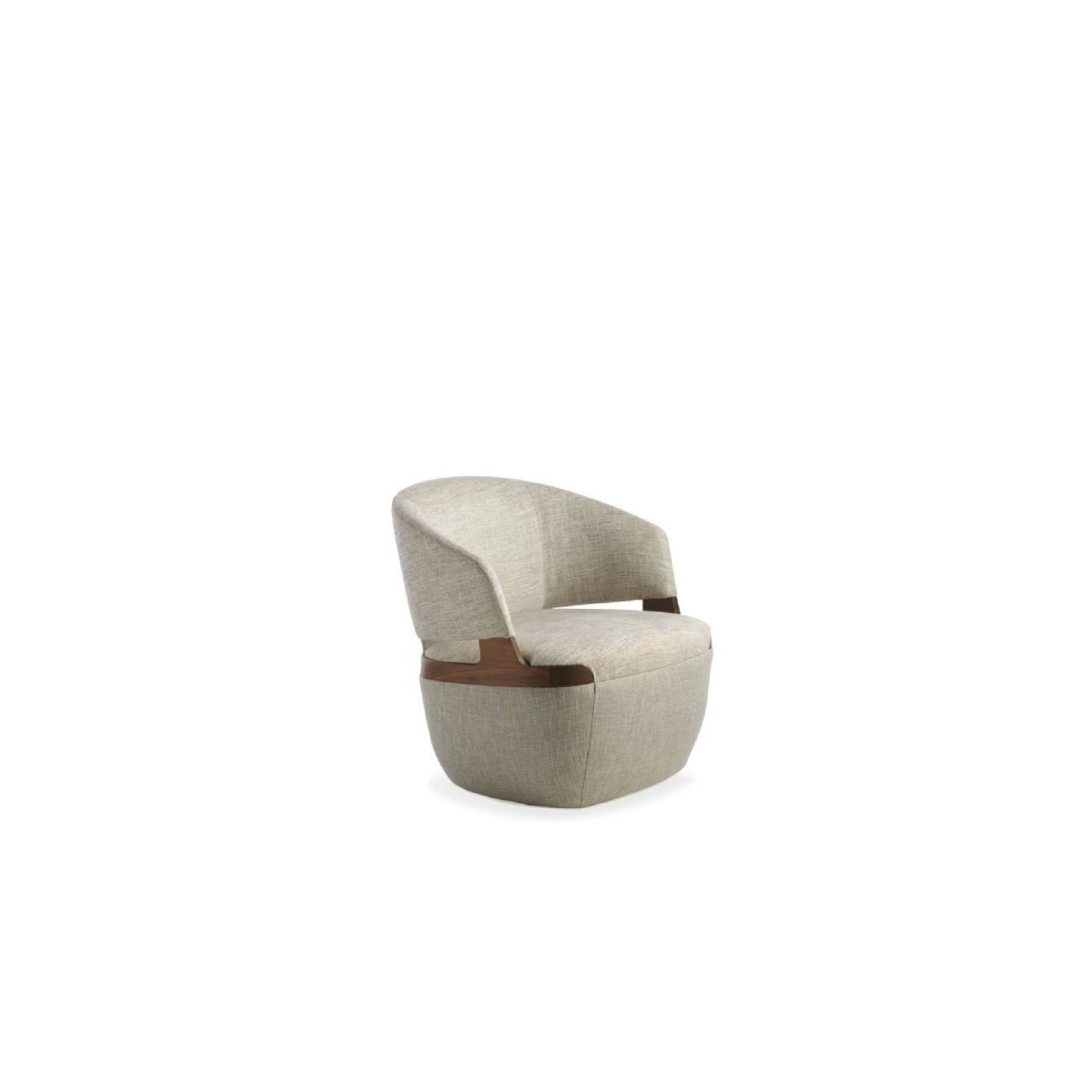 Velis è proposta nella versione poltrona lounge girevole imbottita, in poliuretano espanso ignifugo, e sfoderabile con rivestimenti in tessuto o pelle di collezione e struttura in noce canaletto o in frassino. Compatta e accogliente la lounge Velis si distingue per il dettaglio del bracciolo, in frassino o noce canaletto, in cui base e seduta si incontrano; elemento estetico distintivo dell’intera collezione. Il basamento girevole e imbottito è rivestito come schienale e seduta.