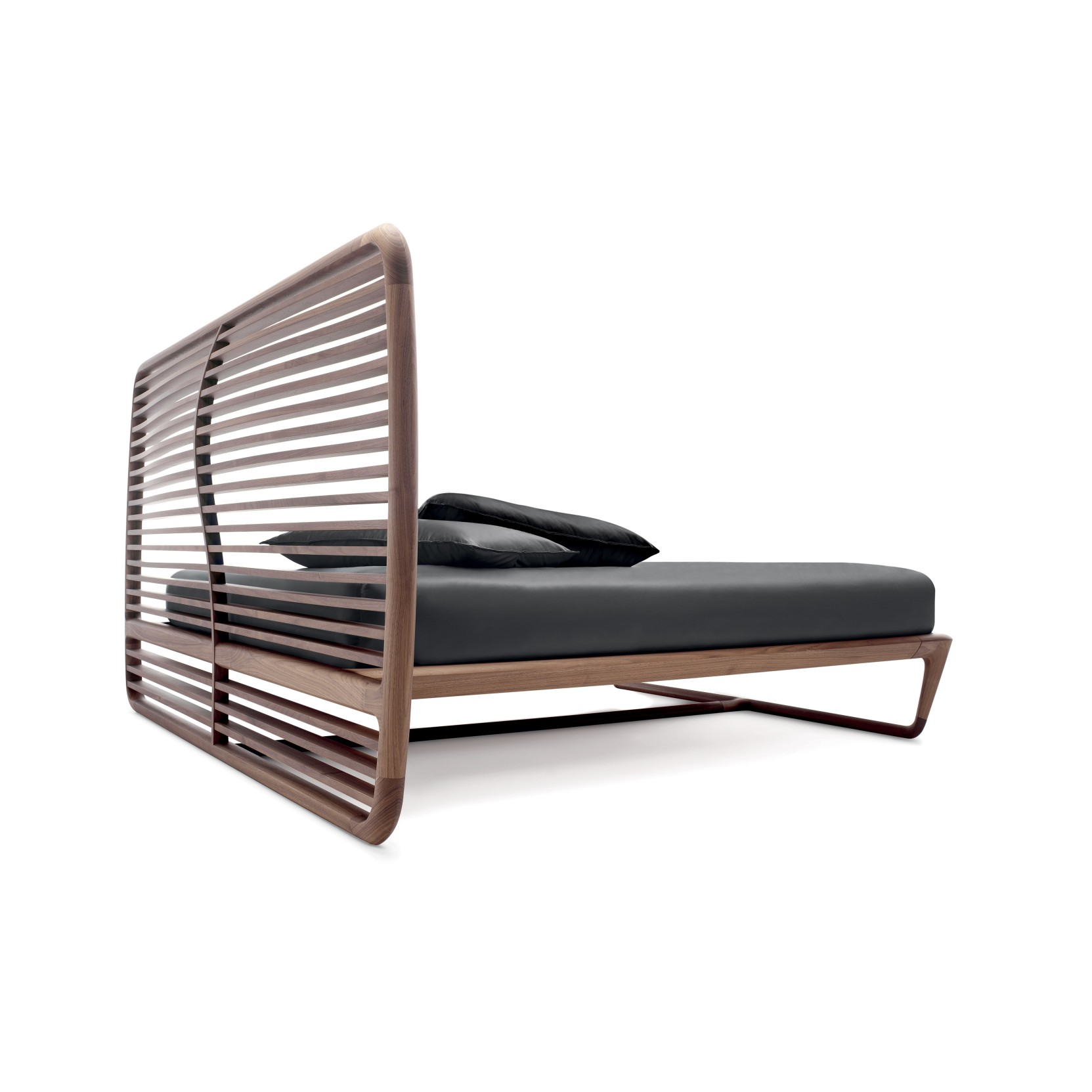 La solidità della struttura e la sua estetica raffinata sono un perfetto esempio di come una solida cultura progettuale possa trasformarsi in un prodotto duraturo e di grande valore. Nella versione con testata alta, i traversi orizzontali si incurvano verso la parte posteriore, conferendo alla struttura una sensazione di morbidezza e leggerezza. La versione bassa, più essenziale, è disponibile anche con la testata imbottita in pelle o pelle naturale, per un aspetto più contemporaneo, senza rinunciare alla qualità e al comfort. Buonanotte Valentina è un invito al relax, pensato per diventare il cuore della zona notte, un luogo dove bellezza e funzionalità si incontrano.
