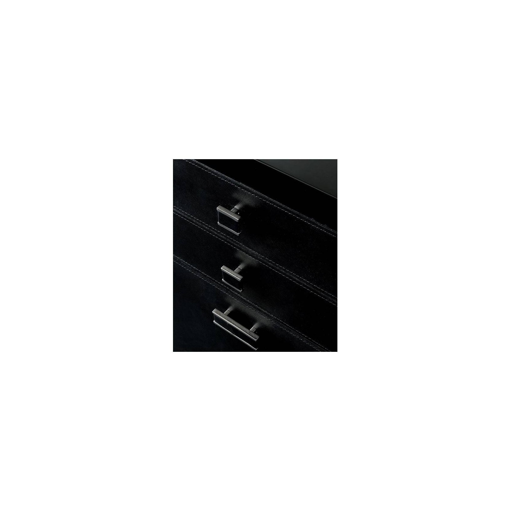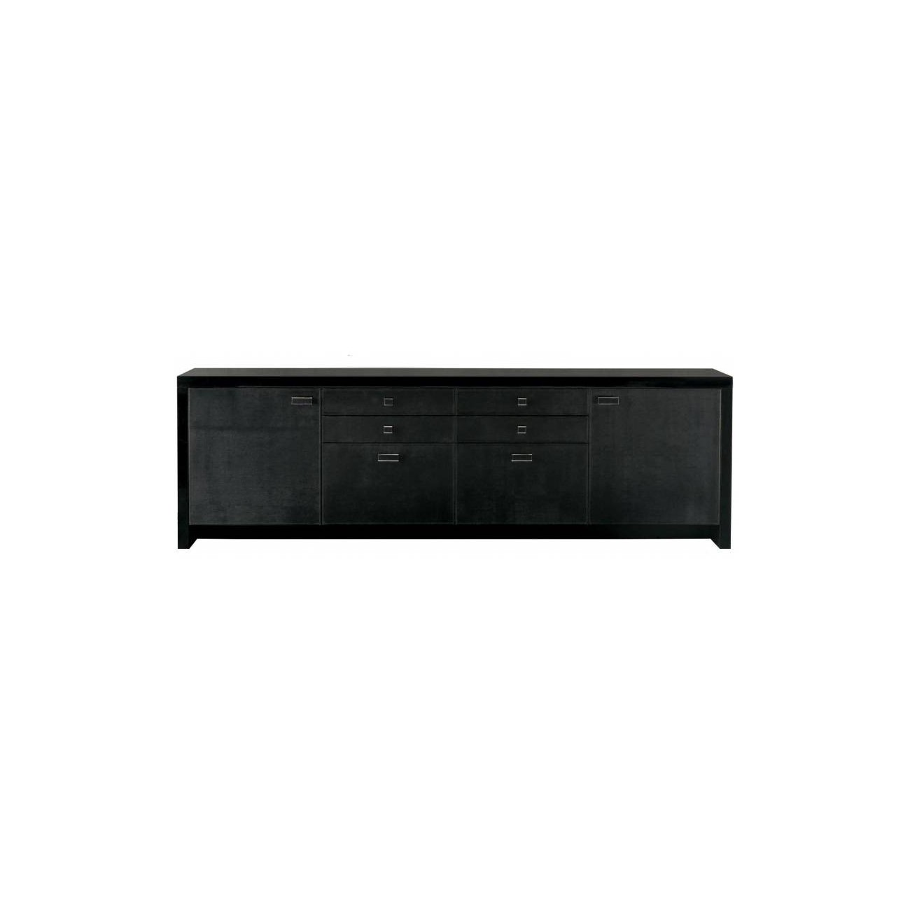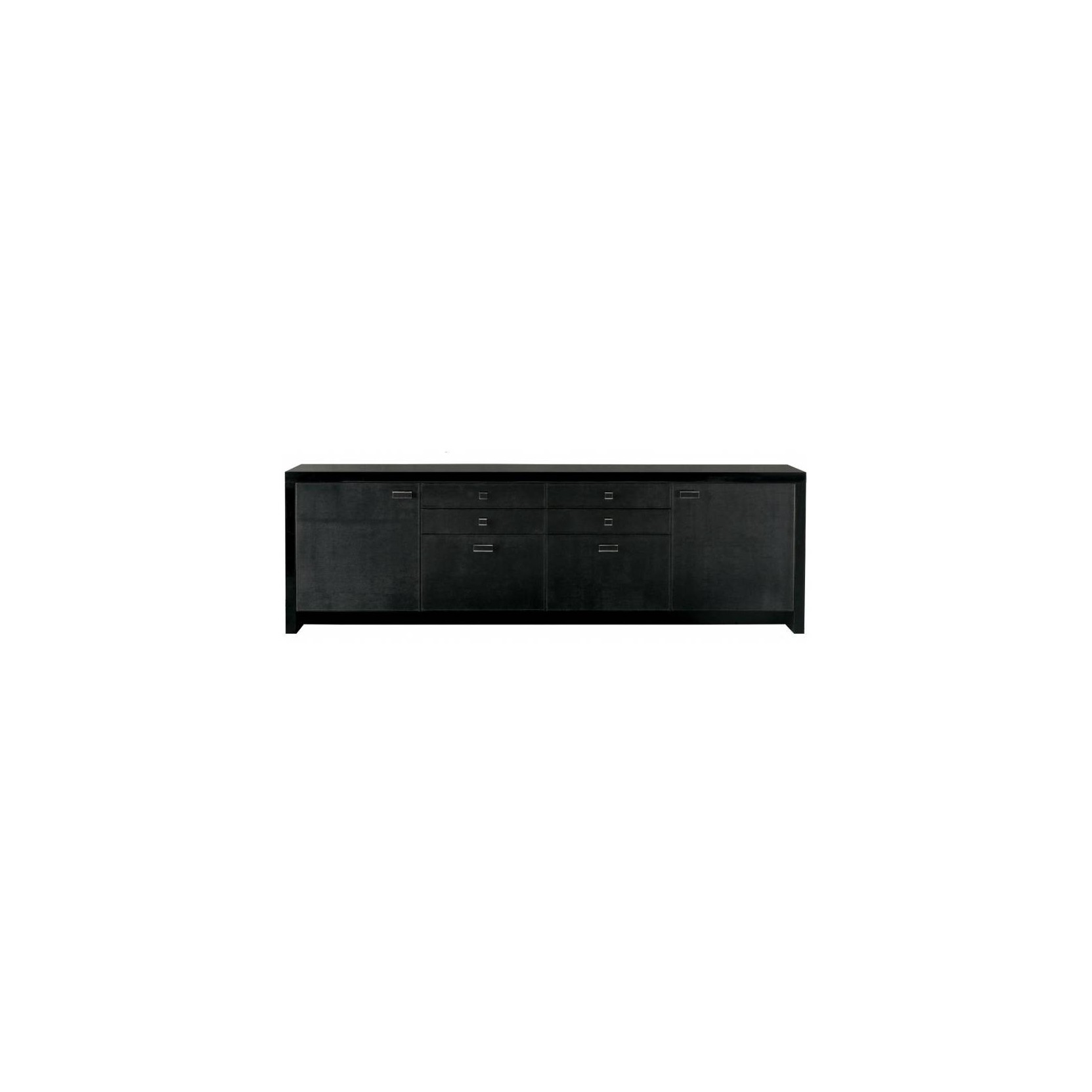 DIMENSIONI: Larghezza: 272 cm Profondità: 52 cm Altezza: 85 cm MATERIALI E FINITURE: Viera Big firmata da Rugiano è una madia con ante in pelle e struttura in laccato lucido o ebano.