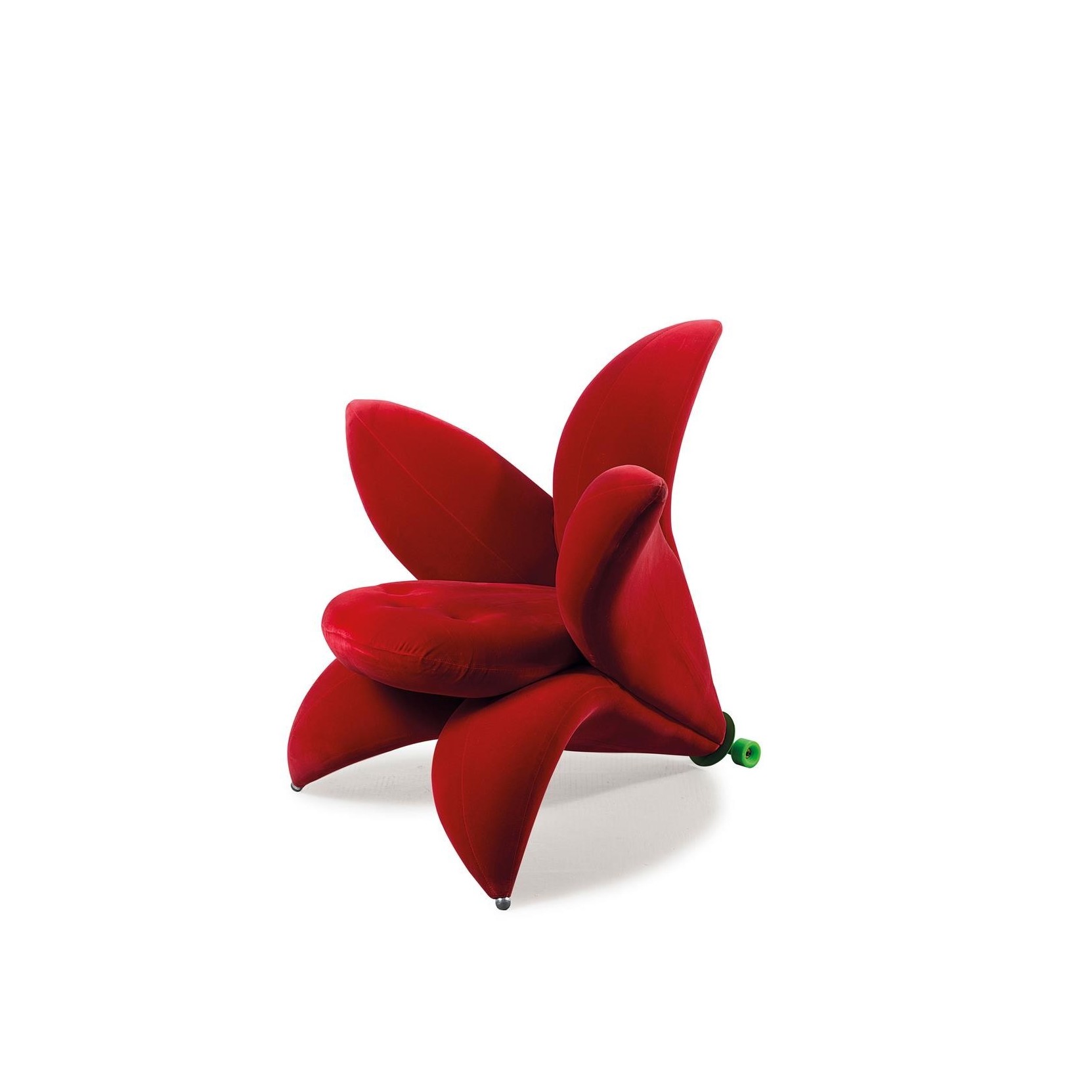 La poltrona a forma di giglio combina alta tecnologia e artigianalità per offrire un comfort eccezionale. La sua struttura in acciaio modellato è progettata per garantire solidità e leggerezza, mentre l’imbottitura in poliuretano espanso assicura una seduta avvolgente. Dotata di ruote posteriori in PLT verde fluorescente per un facile spostamento, è rifinita con piedi in ottone cromato e rivestita in velluto nei colori disponibili a campionario.