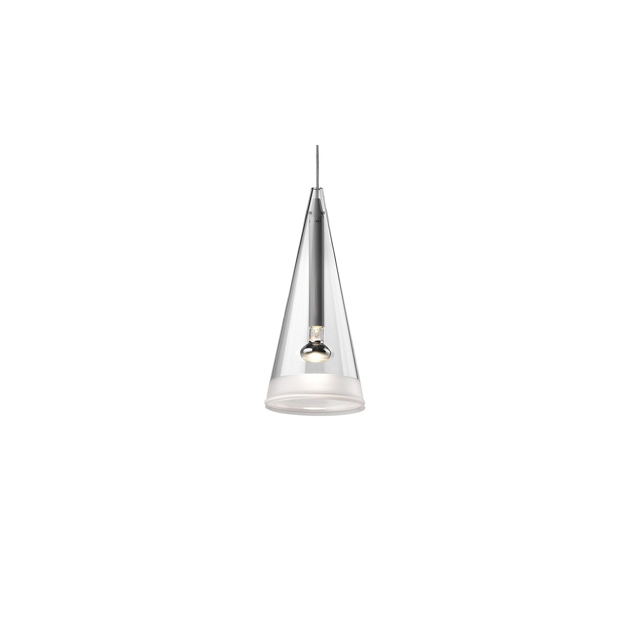 Fucsia 1 lampada a sospensione a luce diretta con diffusore in vetro a forma conica soffiato a bocca e sabbiato nella parte terminale.