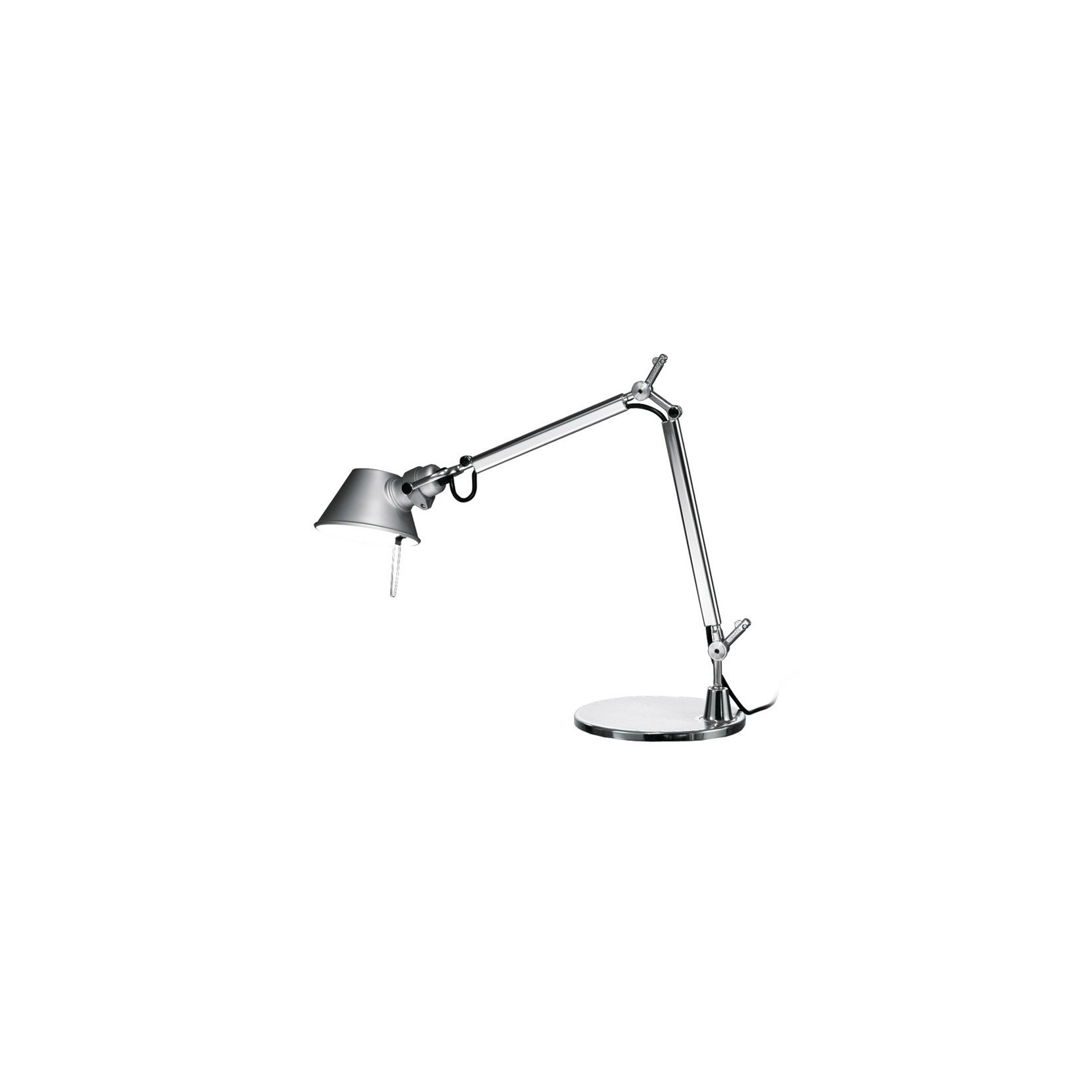 Base e struttura a bracci mobili in alluminio lucidato; diffusore in alluminio anodizzato; snodi e supporti in alluminio brillantato. Sistema di equilibratura a molle.