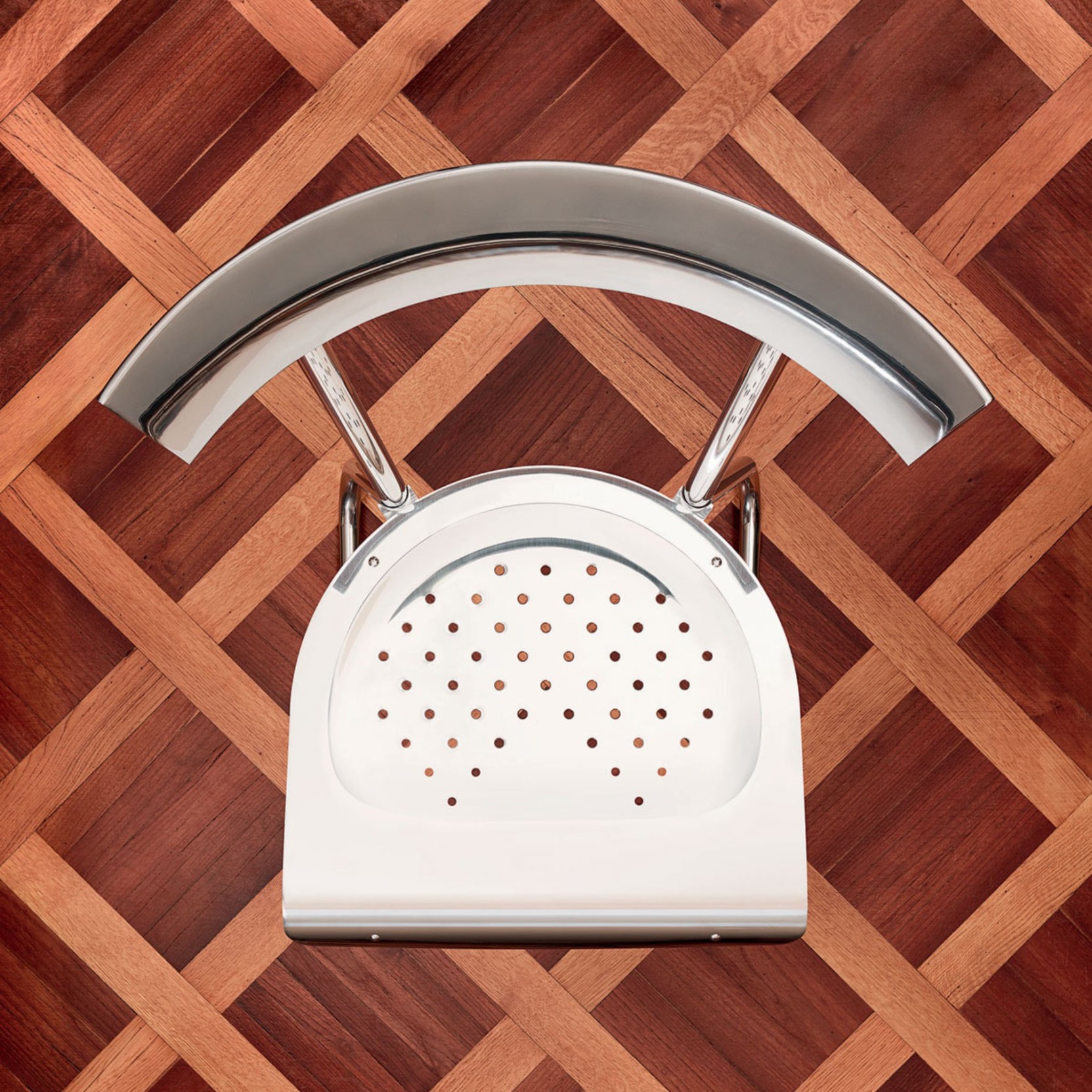 La sedia D.235.1, progettata da Gio Ponti nel 1938, è realizzata interamente in alluminio lucidato. La struttura è composta da un tubolare in estruso di alluminio piegato, con una finitura lucida ottenuta tramite un processo di spazzolatura meccanica. Il sedile e lo schienale sono elementi in alluminio stampato, anch'essi con finitura lucida, sempre attraverso il processo di spazzolatura meccanica. I piedini sono realizzati in materiale plastico. La sedia, disponibile su richiesta per forniture da lotto minimo di 100 pezzi, presenta le seguenti dimensioni: altezza 86,6 cm, larghezza 51,6 cm, profondità 50,7 cm e altezza del piedino di 44,6 cm.