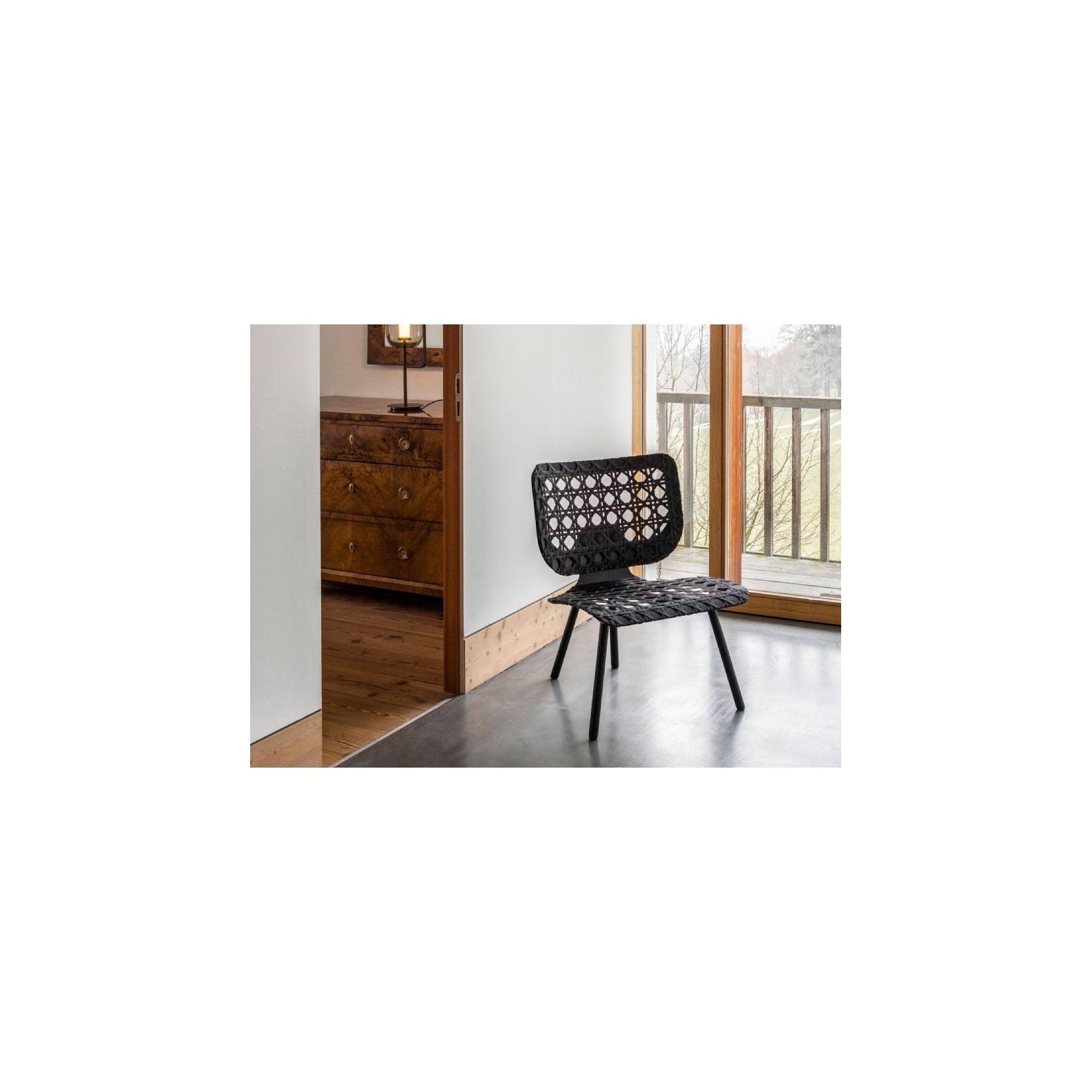 Aerias Chair è un prodotto progettato da Tilla Goldberg per il marchio ClassiCon. Questa sedia è realizzata in tubolare d'acciaio verniciato in nero o grigio. Telaio, sedile e schienale sono modellati in legno laccato nero o grigio, rivestito con intreccio in cinghie di cuoio rinforzato. Questa sorprendente sedia sorprende per la concisione formale, la leggerezza e l'intreccio innovativo. Il modello in vimini di Vienna viene reiterpretato attraverso una scala modificata in pelle.La sedia ha un elevato comfort di seduta derivante dalle cinghie di cuoio tese su una struttura di legno. La tecnica è stata creata da abili artigiani e la grafica del motivo è arricchita dall'uso opzionale di pelle in due colori diversi. Può essere usato come sedia o poltrona. Ideale per abbellire ogni stanza della casa.Spedizione 5-6 settimane lavorative
