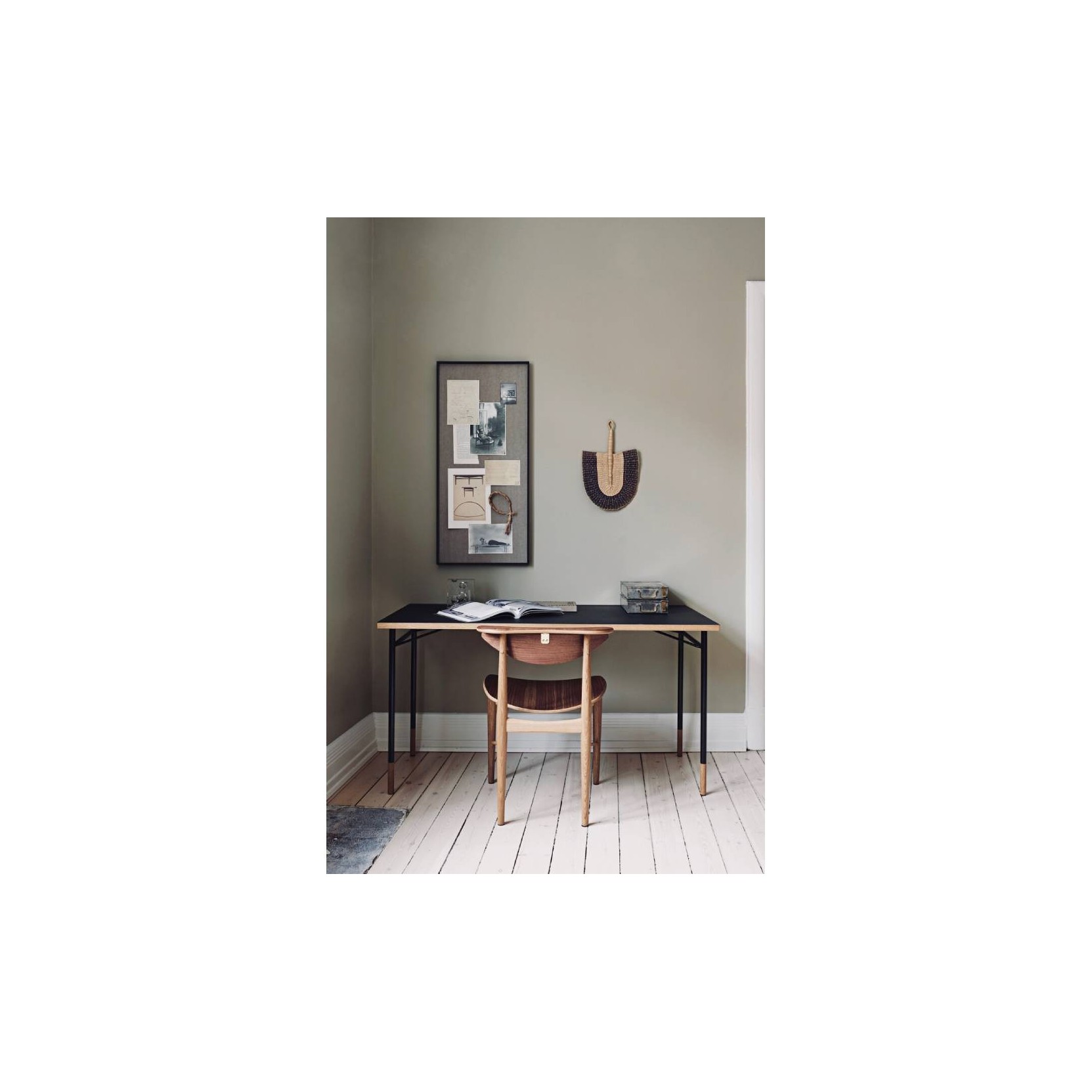 Finn Juhl /h4> La sedia Reading è uno delle sedie più semplici ed eleganti di Finn Juhl. La sedia è caratterizzata da dettagli intricati e una storia bizzarra. Realizzata in rovere con schienale e top in noce ed è disponibile anche in una variante verniciata nera. La sedia è stata progettata nel 1953 e consente più posizioni di seduta: una funzione di design unica, tipica dei mobili di Finn Juhl. In precedenza la Reading Chair era disponibile solo con un sedile imbottito, ma ora è stata rilanciata con un sedile impiallacciato - come si è visto nella primissima versione, che Finn Juhl ha progettato per la società Bovirke.