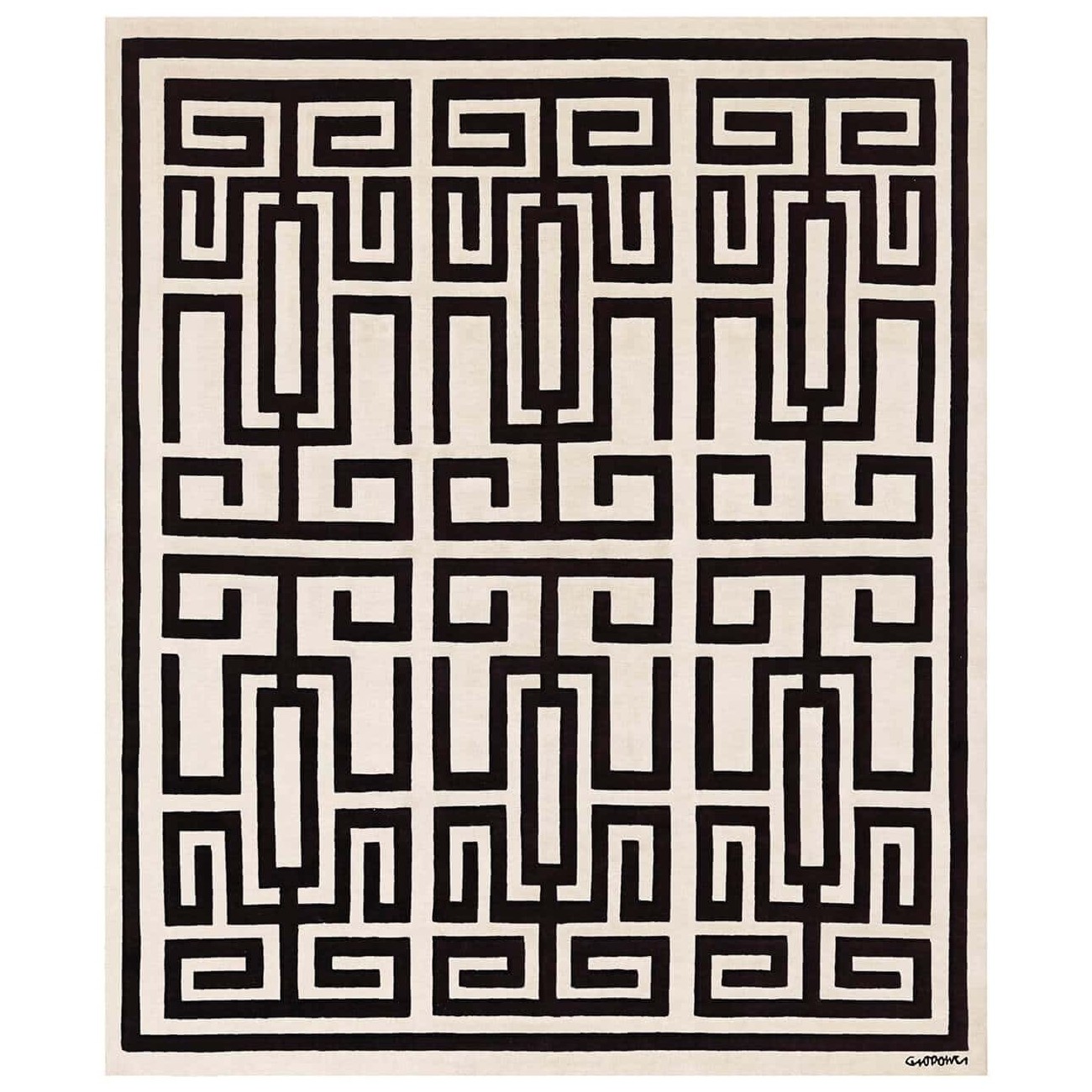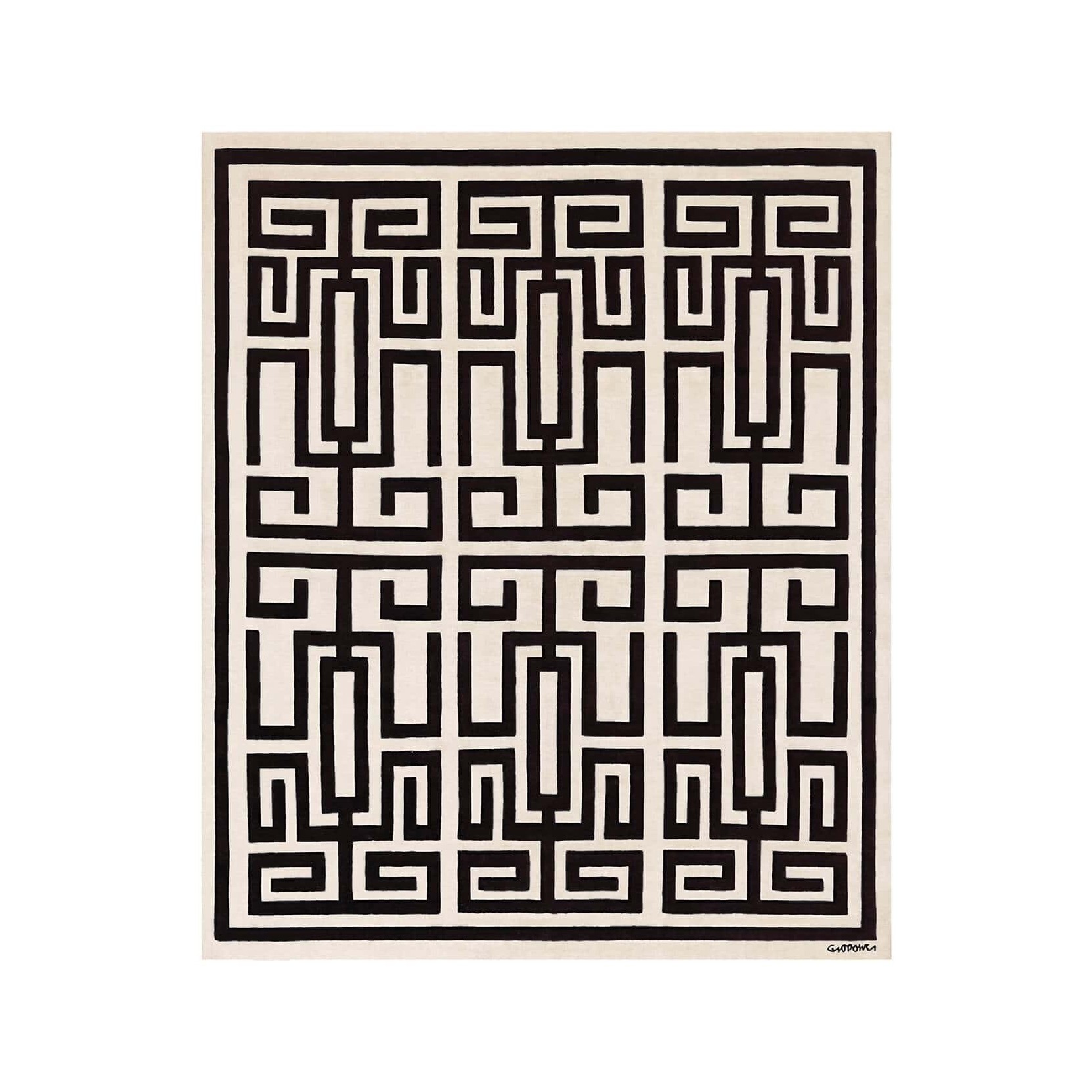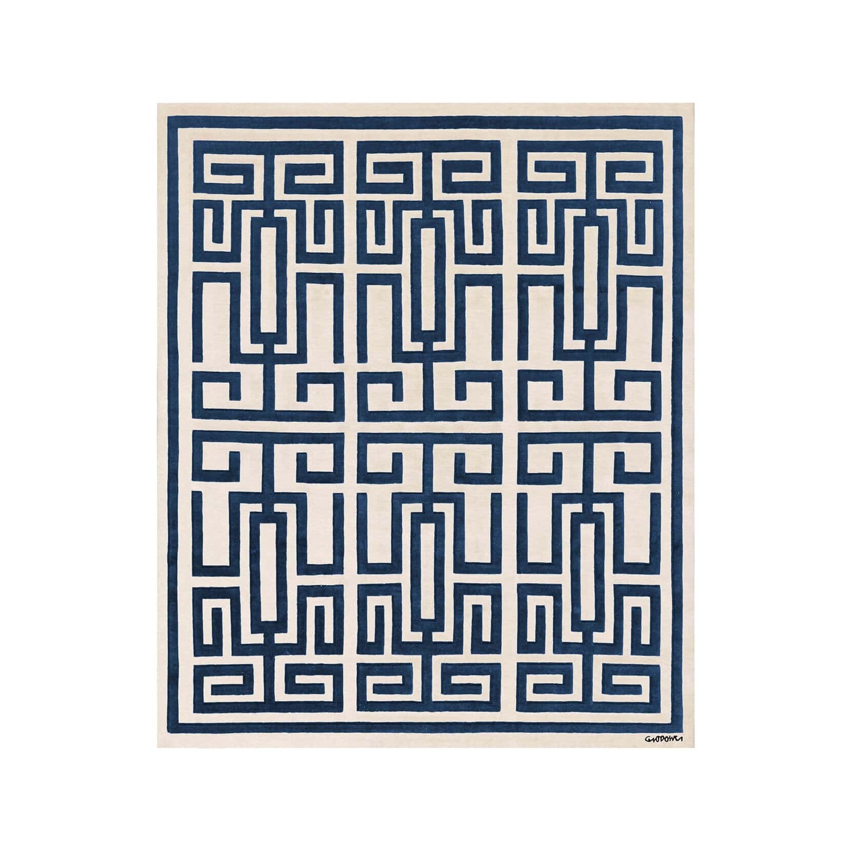 La collezione di tappeti Gio Ponti combina eleganza e raffinatezza, con geometrie semplici che suggeriscono tridimensionalità e giochi di luce. Realizzato a mano in lana tibetana annodata a mano secondo le antiche tradizioni, con un’altezza del pelo di 7 mm, lavato, rifinito e frangiato a mano, è disponibile nelle varianti colore Black, Blue Black, Blue, Green e Red.