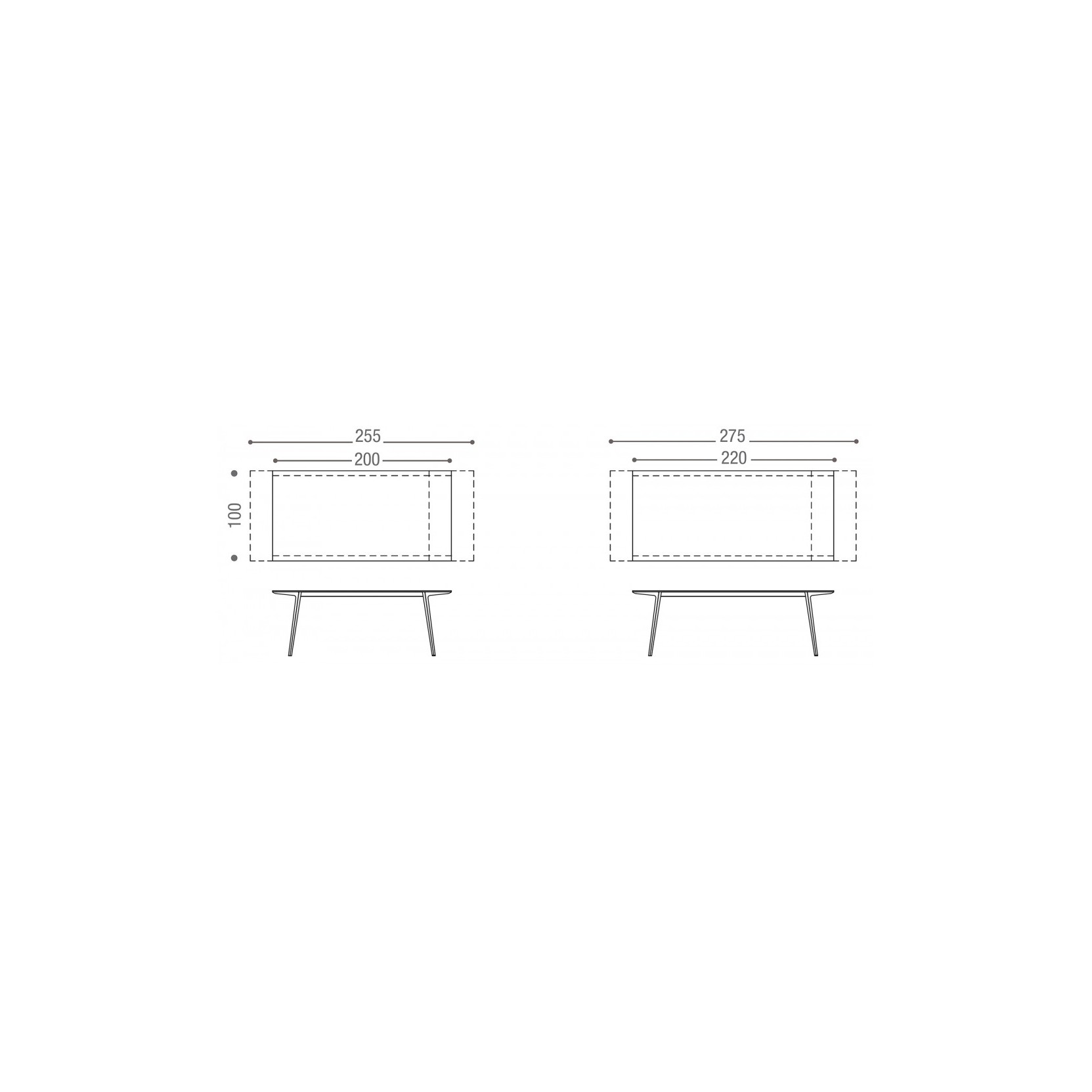 MISURE Larghezza 90 cm Profondità 200 cm Altezza 73 cm MATERIALI E FINITURE Struttura in alluminio nero Top in Fenix nero