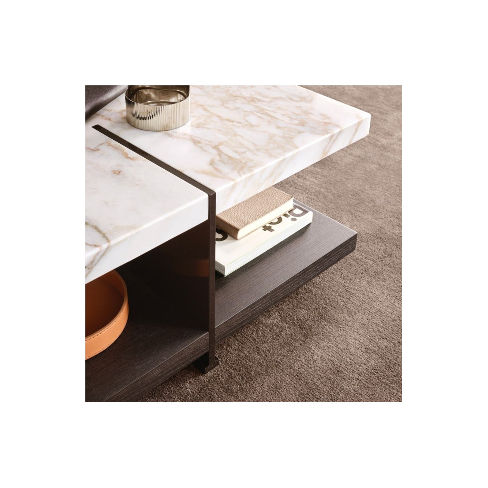 I tavolini da centro stanza della collezione Bristol si distinguono per la presenza di due piani sovrapposti, con i sostegni in metallo che intersecano il piano superiore, definendo lo stile unico della collezione. Il piano inferiore è disponibile in versione laccata o in essenza, mentre il piano superiore può essere scelto anche in marmo. Disponibili in due dimensioni, si adattano perfettamente a diversi spazi abitativi: con diametro di 63,5 cm e altezza di 33 cm, oppure con diametro di 100 cm e altezza di 33 cm.