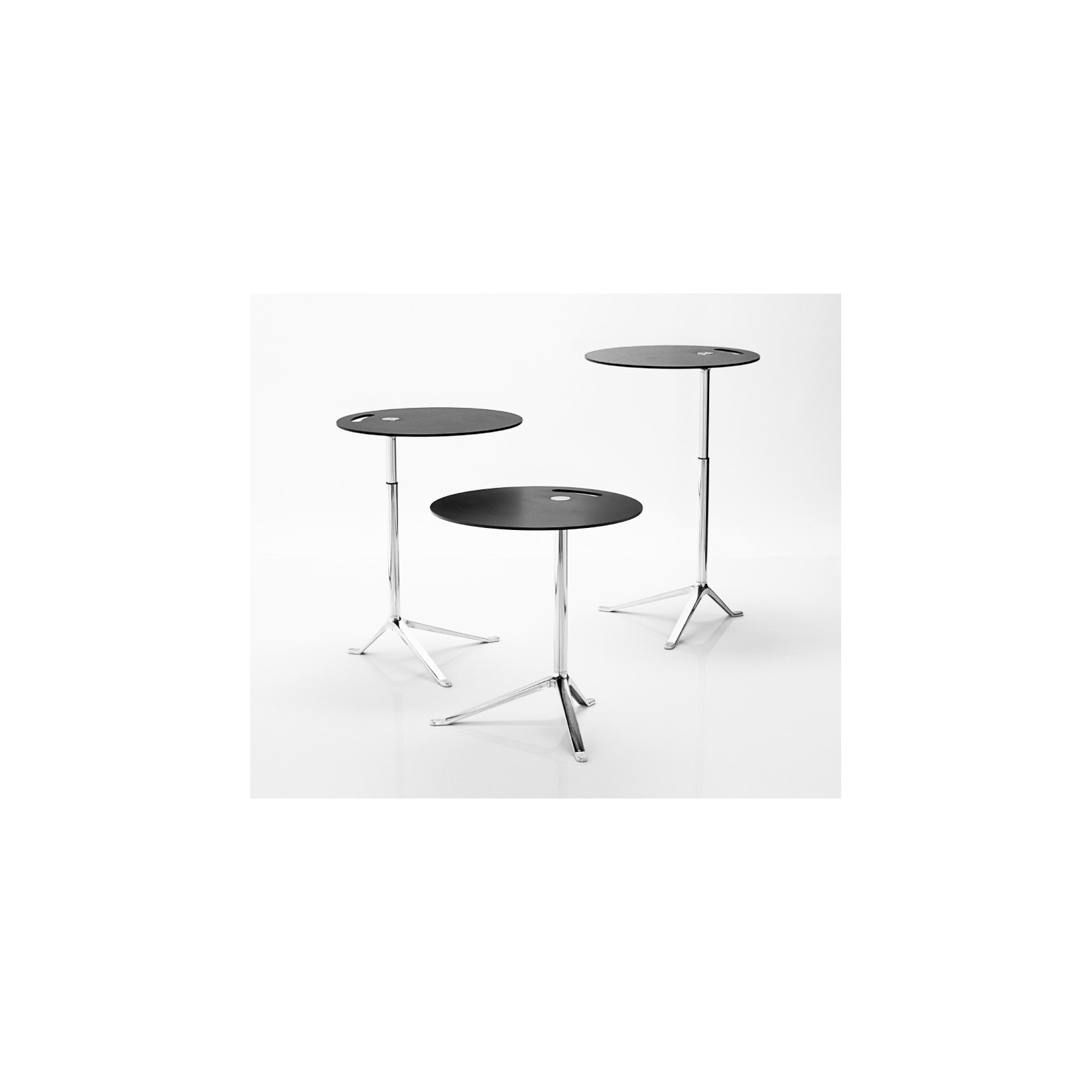 Little Friend KS11 e KS12 sono tavolini di Kasper Salto per Fritz Hansen. Il top è realizzato in laminato compatto in diversi colori o con superficie in legno finitura rovere o noce. La struttura è realizzata in tubolare d’acciaio cromato a specchio, mentre i piedi sono realizzati in alluminio pressofuso lucidato. La base è inoltre disponibile in versione laccata come il colore del top.Tavolini multifunzione dalle linee essenziali, una struttura esile, ma stabile, li rendono perfetti come appoggio per il laptop accanto al divano. La possibilità di scegliere se acquistare la versione regolabile in altezza o nella versione con altezza fissa vi permetterà di poterlo adattare a diversi usi e funzioni, dalla camera da letto come comodino al living come tavolino di cortesia.