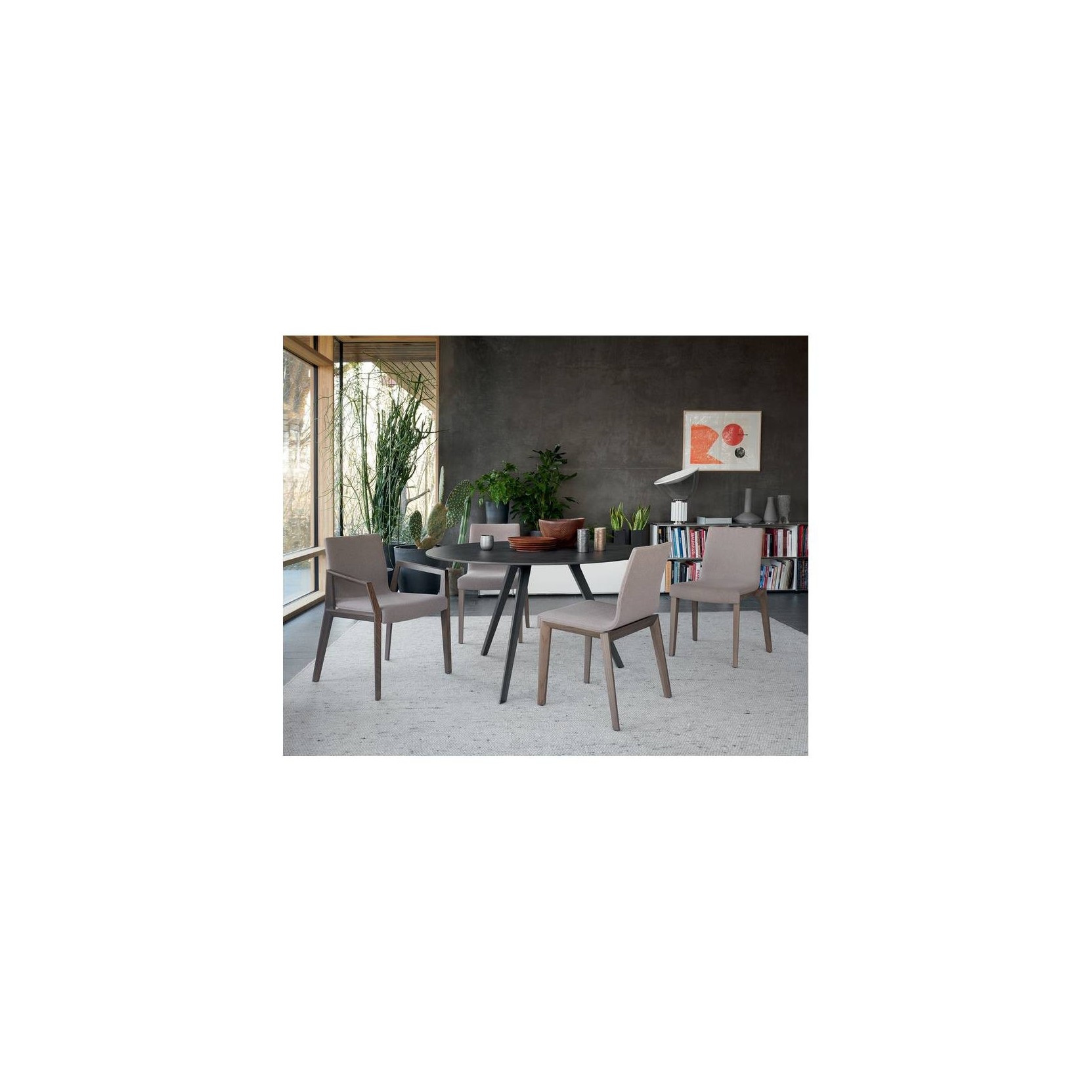 Il tavolo Katana è disponibile anche nella versione con piano tondo da ⌀120 e 130 cm in marmo, per interni, oppure hpl o gres porcellanato, adatti anche all’esterno. Le tre gambe sono in metallo verniciato nelle finiture di collezione.Famiglia di tavoli che rappresenta l’ideale incontro tra artigianalità e progettualità evoluta, Katana si distingue per il disegno delle gambe ispirato alle spade della tradizione giapponese. All’insegna della versatilità, il tavolo è disponibile inoltre nelle versioni con piano tondo, piano rettangolare e quattro gambe.