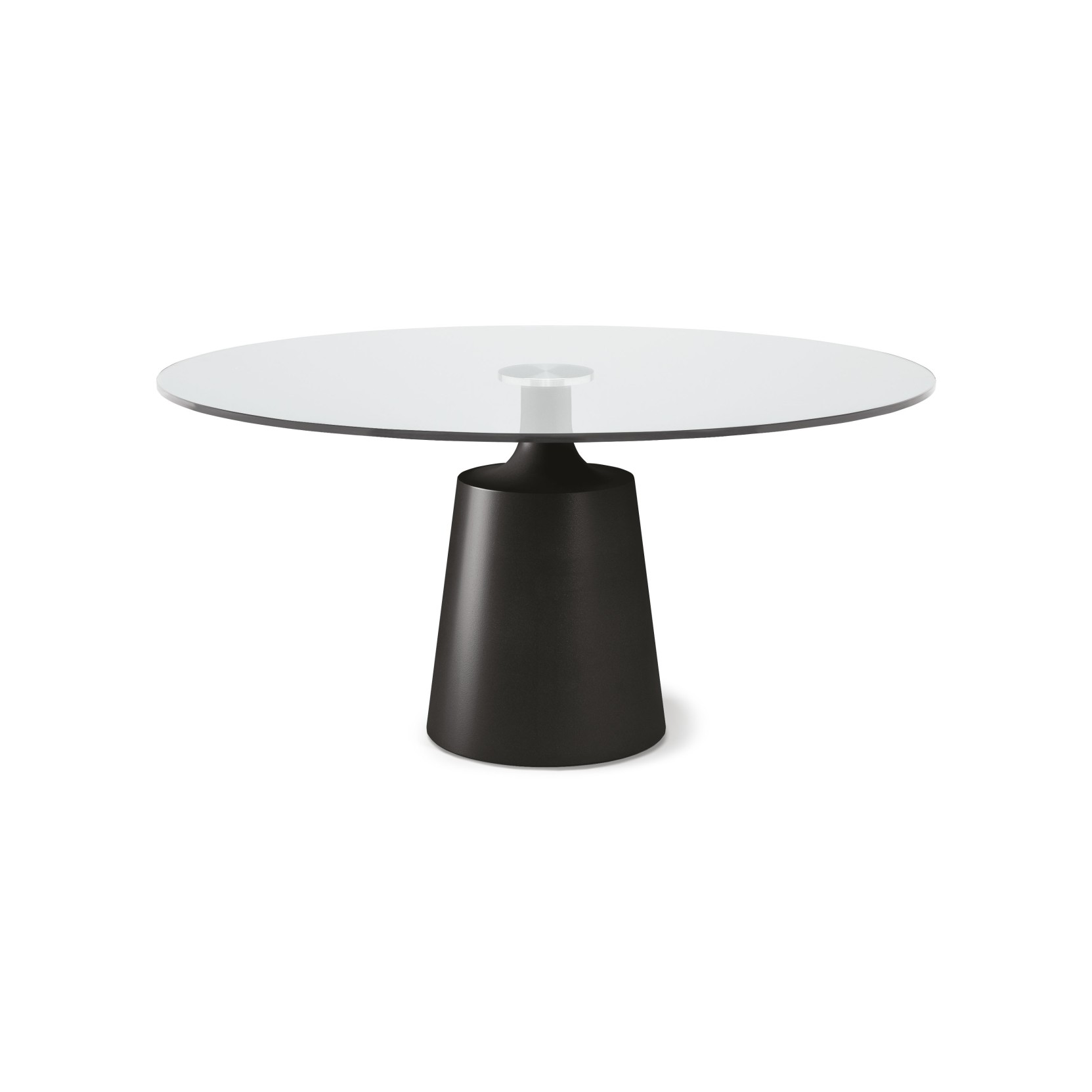 La sua base, a forma di tronco di cono, unisce robustezza e leggerezza visiva grazie alle finiture metallizzate e all’innesto con il piano stretto e leggermente rientrante, che richiama un collo slanciato a sostenere il tavolo. La collezione offre diverse varianti, tra cui il modello con piano in vetro trasparente o extrachiaro bisellato, e una gamma di finiture per la base in acciaio verniciato goffrato, che conferisce resistenza e un aspetto artigianale unico con le nuvolature della satinatura titanio. Questo tavolo si inserisce perfettamente in ambienti raffinati e moderni, esaltando l’armonia tra materiali di qualità e dettagli accurati.
