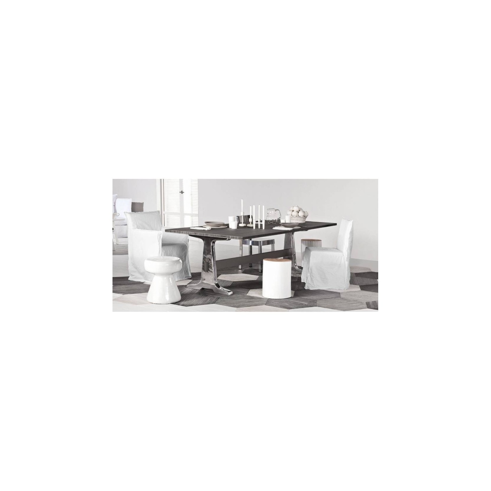 DIMENSIONI: L. 240 cm - P. 100 cm - H. 73 cm MATERIALI E FINITURE: Brick 133 è un tavolo di Paola Navone per Gervasoni, le gambe sono realizzate in alluminio lucidato il top è realizzato in legno massello rovere invecchiato non dogato.