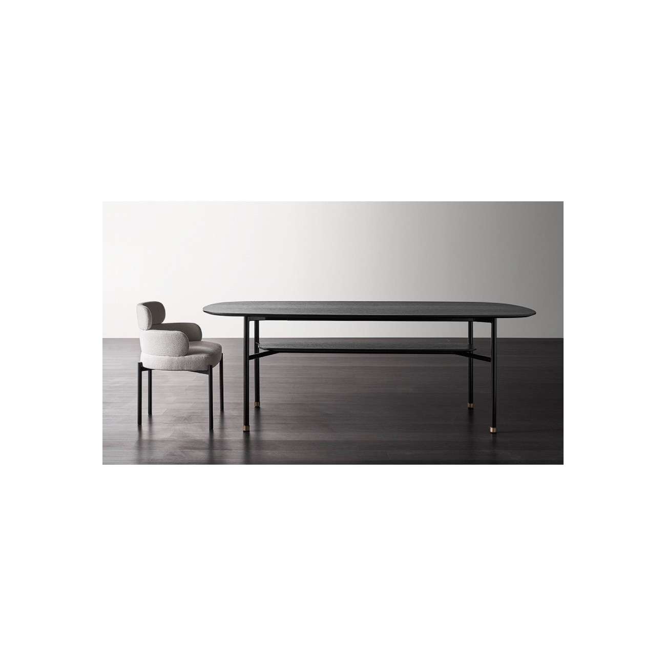 Hubert nasce dalla volontà di creare un tavolo semplice, definito da un telaio in tubolare di ferro molto lineare che sostiene diverse tipologie di piani, dalle forme e dalle dimensioni svariate. Hubert offre ampie possibilità compositive e, nella sua pulizia grafica, si concede vezzi come la possibilità del doppio piano o un puntalino di ottone presente nel telaio.