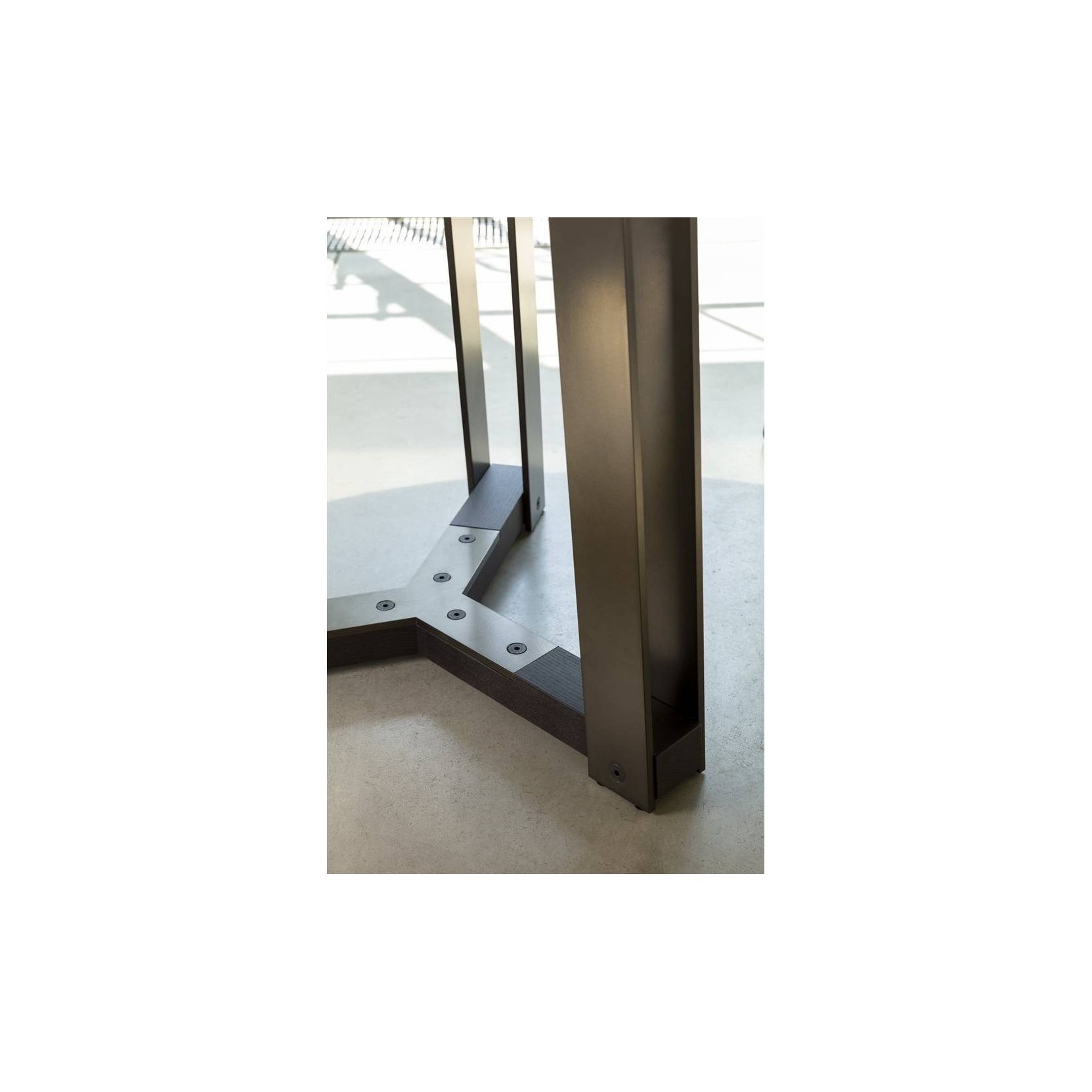 Tavolo con base in metallo finitura ottone bronzato spazzolato e in massello di frassino. Piano in frassino oppure marmo.Spedizione 5-6 settimane lavorative