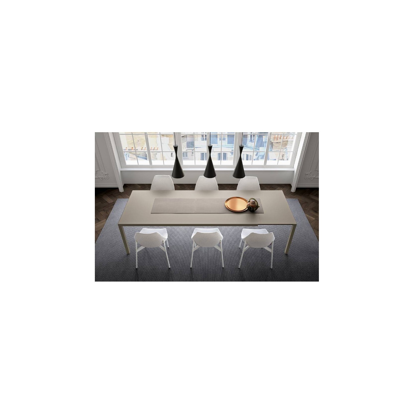 Leggero, essenziale, intelligente: Soffio disegna lo spazio con delicatezza e arguta versatilità. La sua struttura, in alluminio verniciato nei venti colori della collezione, ha volumi minimali e ben studiati. Le gambe a sezione triangolare delineano spigoli diamantati e sorreggono il piano superiore in essenza o in laccato opaco. In larghezza sono disponibili 5 misure, mentre è personalizzabile in lunghezza: nella versione fissa fino a 3 metri, nella versione allungabile raggiunge i 3,6 metri.Spedizione 5-6 settimane lavorative