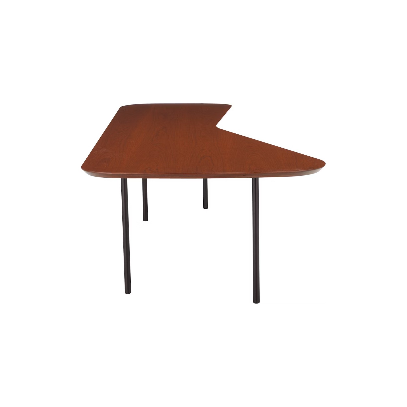 Il Model 108 Coffee Table, disegnato da Alexander Girard nel 1948, incarna la sua filosofia progettuale in equilibrio tra funzionalità razionale e un tocco di vivace leggerezza. La sua forma asimmetrica rompe gli schemi del rigore modernista, introducendo un gioco visivo che conferisce dinamismo e originalità agli spazi.