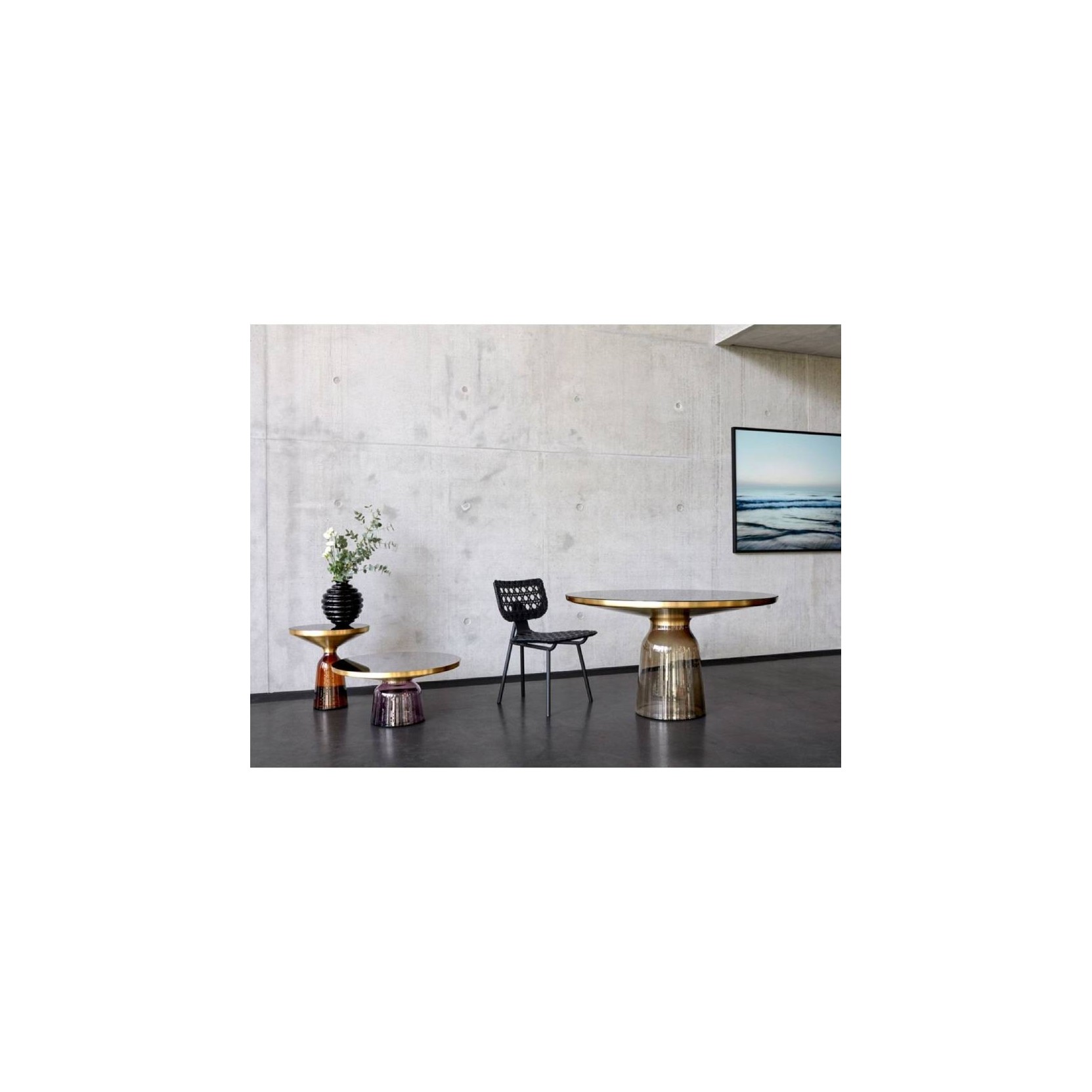 Il vetro della base nella sua sfumatura smoke grey, tramite all'appoggio in ottone, si unisce sapientemente al piano in cristallo nero o marmo Nero Marquina, creando così una scultura da esporre nel proprio living-room o da inserire come complemento in un ampio ingresso. Ogni tavolo è realizzato a mano, quindi le piccole bolle o le irregolarità nel vetro sono una caratteristica e non un difetto. Il vetro, per sua natura un materiale fragile, in questo caso fornisce un solido supporto come base, mentre, il volume metallico, nonostante la sua pesantezza, sembra fluttuare. Il giovane designer Sebastian Herkner ha ricevuto numerosi riconoscimenti per i suoi progetti, come il German Design Award 2011 nella categoria Newcomer. The Bell Table, vincitore di un Red Dot Design Award, è il primo progetto prodotto da ClassiCon.Spedizione 5-6 settimane lavorative