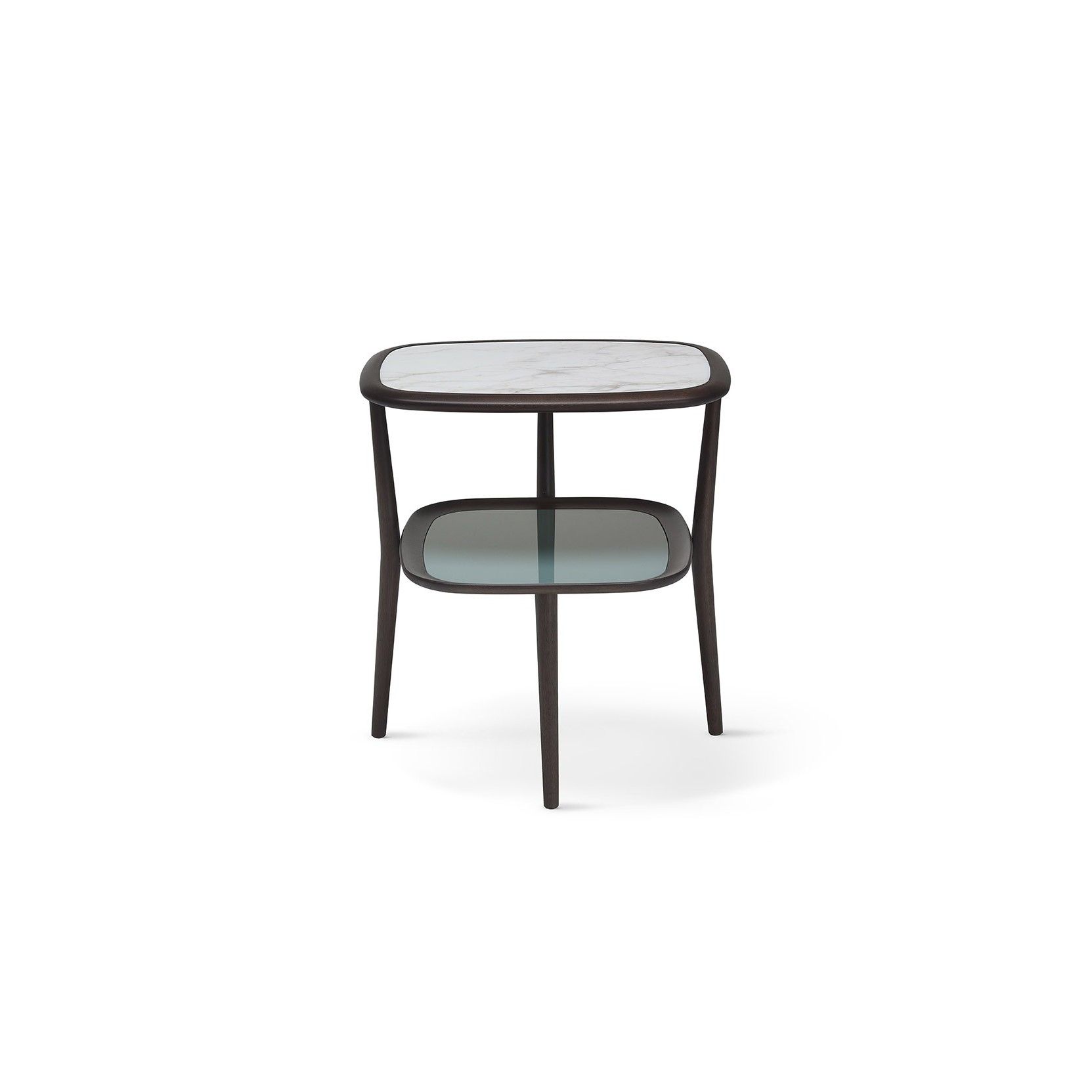 Petit Matin, progettato da Roberto Lazzeroni, è un elegante tavolino realizzato in massello di noce americano. Il tavolino presenta un piano inferiore in vetro colorato, mentre il piano superiore può essere in vetro o marmo. Su richiesta, è disponibile anche un piano superiore in vetro colorato.