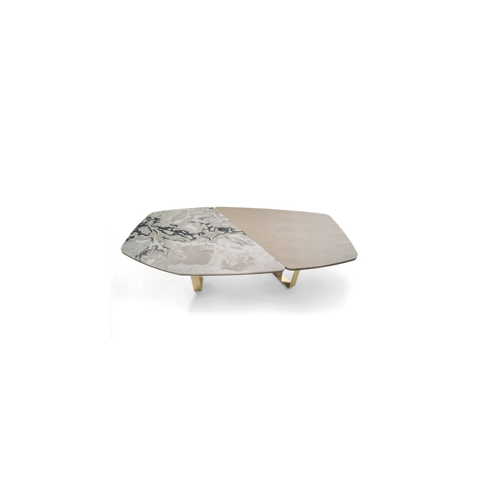 Keope è un tavolo composto da 2 gambe trapezoidali e caratterizzato dal piano sagomato e sezionato multimaterico. Base lavorata in metallo rettificato tagliato con laser nelle finiture: Brown sfumato lucido, oro Black Rose, oro chiaro lucido, oro Champagne opaco, cromato lucido, cromo nero lucido, bronzo satinato opaco, oro rosa lucido, oro rosa opaco. L’inserto nelle gambe è rivestito in pelle a campionario oppure in legno essenza Ebano lucido/opaco, Noce Canaletto tinto Macadamia lucido/opaco, Sycamore frisè lucido/ opaco. Sottopiano rivestito in pelle a campionario coordinato, eventualmente, con l’inserto delle gambe. Il piano, scomposto in 2 o 3 parti, è nelle finiture: marmo Emperador Dark, marmo Verde Guatemala, marmo Bardiglio Nuvolato, marmo Palissandro Oniciato, marmo Silver Wave, marmo Agatha Black, marmo Calacatta Gold, marmo Dover White, marmo Rosso Levanto, marmo Elegant Brown, marmo Frappuccino, marmo Corteccia, marmo Panda White, marmo Sahara Noir (finitura poliestere), marmo Port Saint Laurent, marmo Fusion Light, marmo Patagonia, marmo Explosion Blu, marmo Fusion Multicolor, marmo Quarzo Juliet, (Onici su richiesta) o in legno essenza Ebano lucido/opaco, Noce Canaletto tinto Macadamia lucido/opaco, Sycamore frisè lucido/opaco.Spedizione 5-6 settimane lavorative