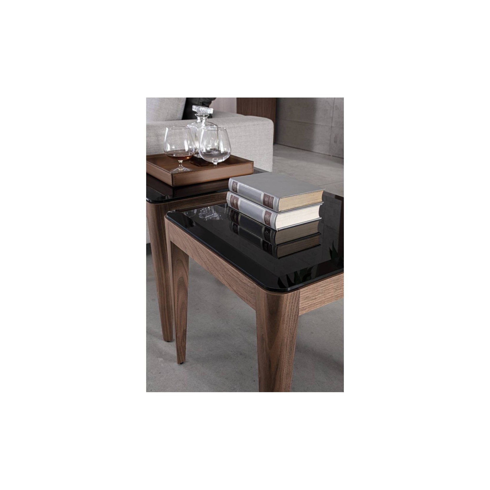 Struttura Massello noce canaletto | Massello frassino Top Pannello di fibra a media densità laccato | Marmo | Vetro retroverniciato Dimensioni cm 50x50x50h cm 120x120x38h
