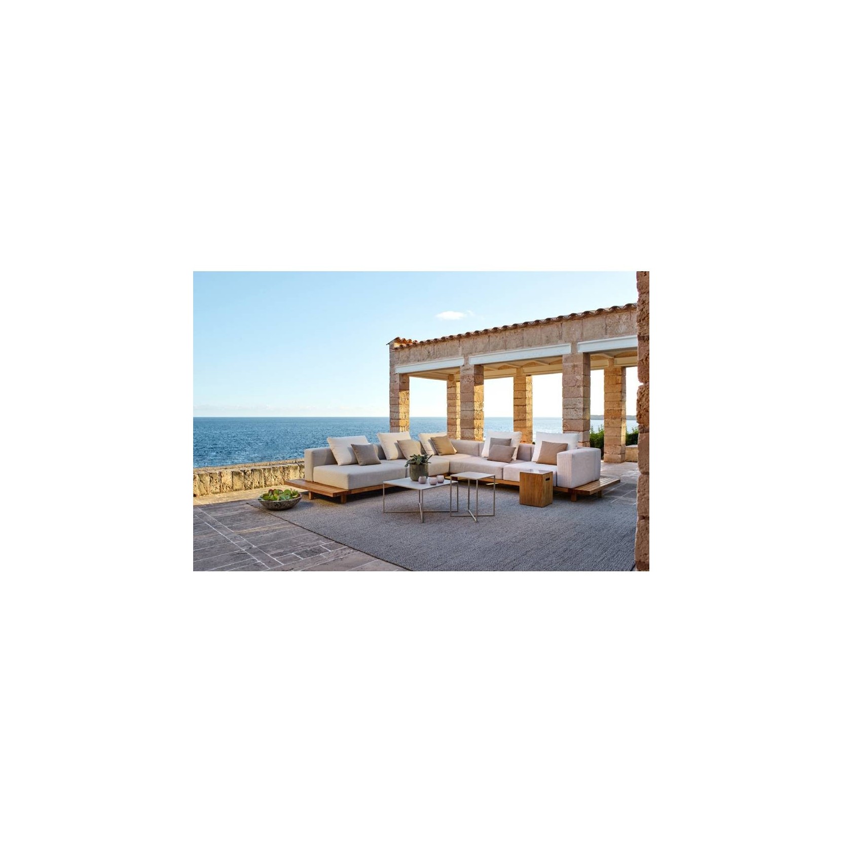 Il divano Vis à Vis è un'ode alla purezza del design. Slanciate piattaforme in teak che sembrano fluttuare sostengono comodi cuscini outdoor senza schienali o braccioli visibili. Gli stessi cuscini scivolano, ricoprendola, sopra una staffa in acciaio inossidabile, nascondendo il telaio a beneficio dell'estetica. Un bordo grafico di doghe in teak circoscrive quasi tutto l'insieme. Il divano Vis à vis è composto da un sistema modulare, che permette un’infinità di combinazioni, dal piccolo daybed, all’ampio divano lounge con tavolinetti. I cuscini per esterni sono realizzati in modo tale da resistere perfettamente a un temporale, grazie alla loro imbottitura ventilata ricoperta da una fodera interna idrorepellente. Le cuciture delle fodere sono rivolte verso l'interno, rendendo il cuscino perfettamente impermeabile. La scelta delle stoffe propone una gamma di oltre 100 tessuti da outdoor ispirati alla natura.Spedizione 5-6 settimane lavorative