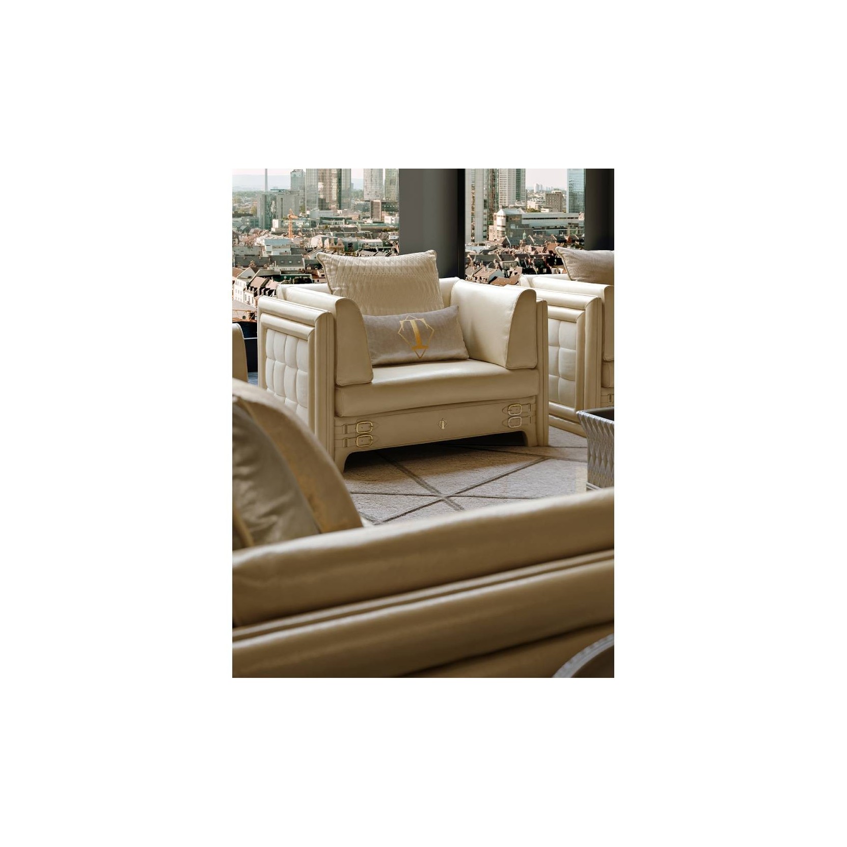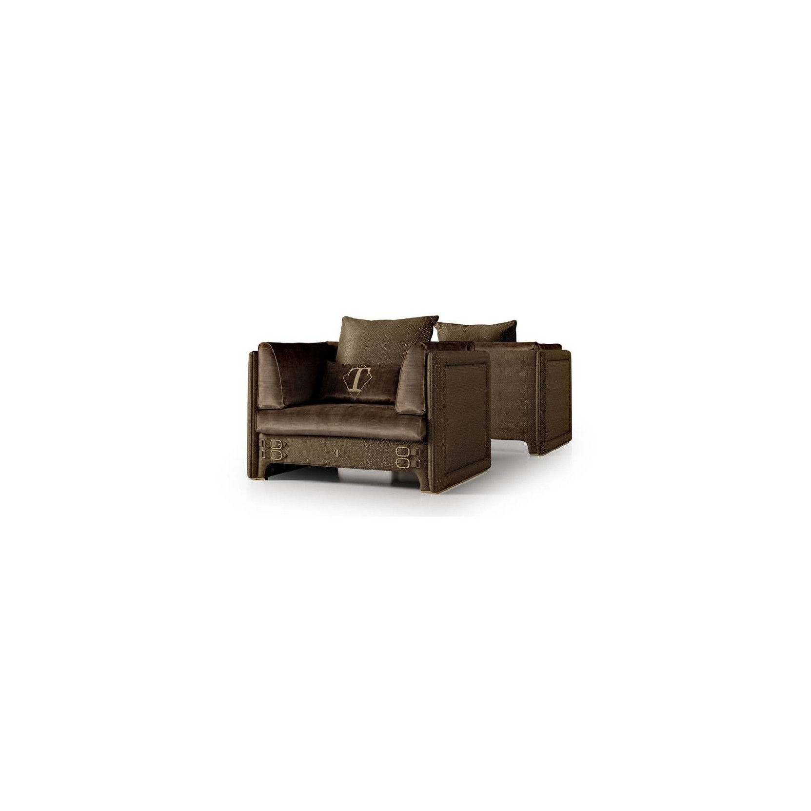 La poltrona della collezione Numero Tre pensata per essere altamente personalizzabile. La poltrona può essere totalmente rivestita in pelle o tessuto. La poltrona Numero Tre è realizzabile con pannelli laterali opzionabili in diverse versioni, con trama intrecciata a quadri, con ricamo a rombi oppure semplicemente con pannelli lisci. Dettagli in metallo oro e fibbie impreziosiscono ulteriormente questo elemento della zona giorno. La poltrona Numero Tre è disponibile in diverse finiture come da campionario.Spedizione 5-6 settimane lavorative