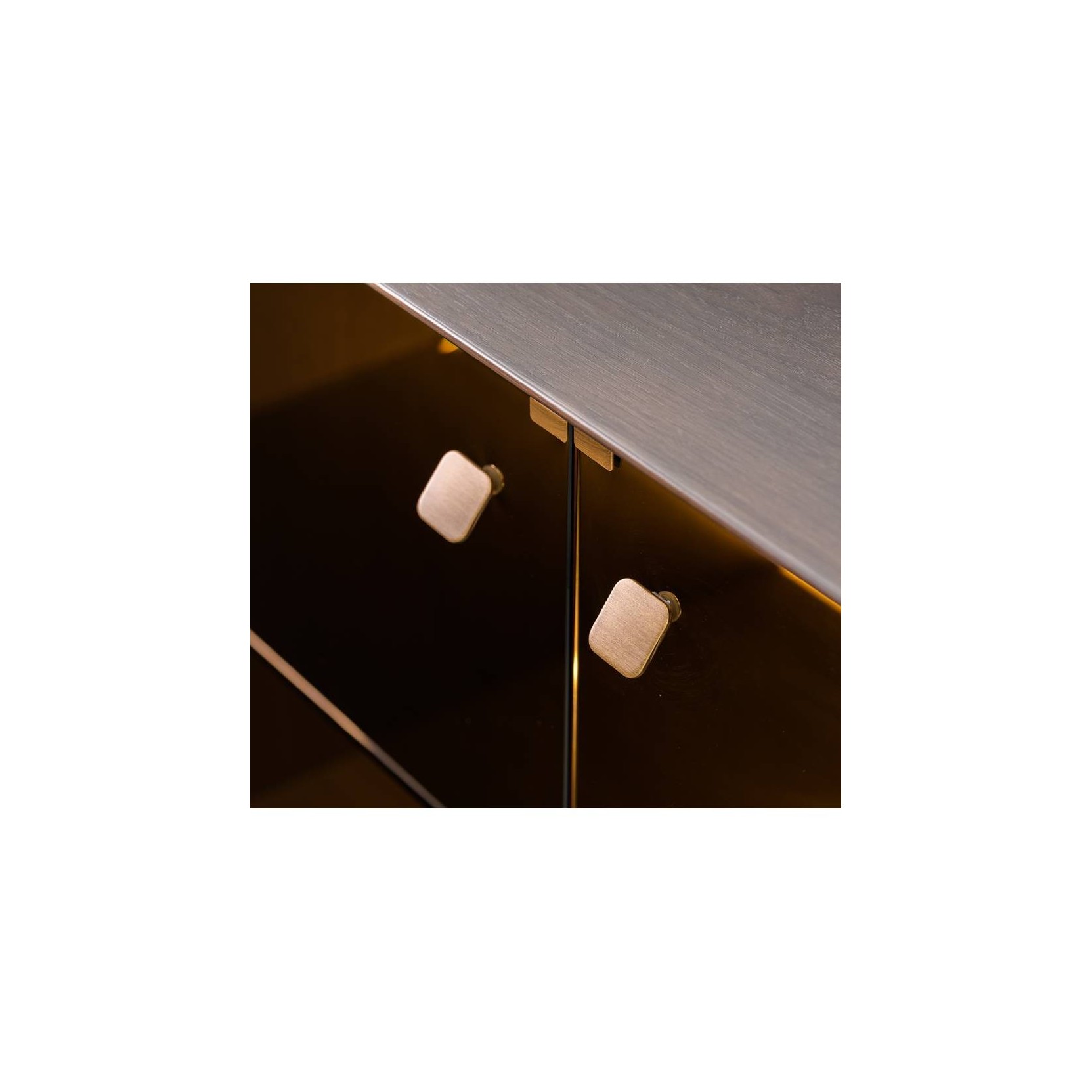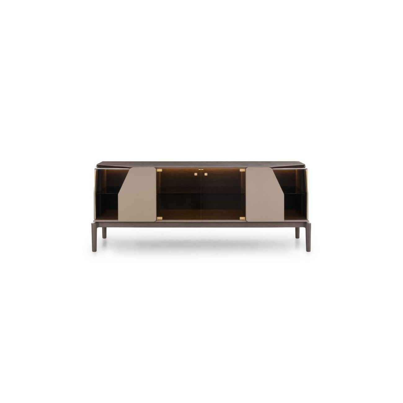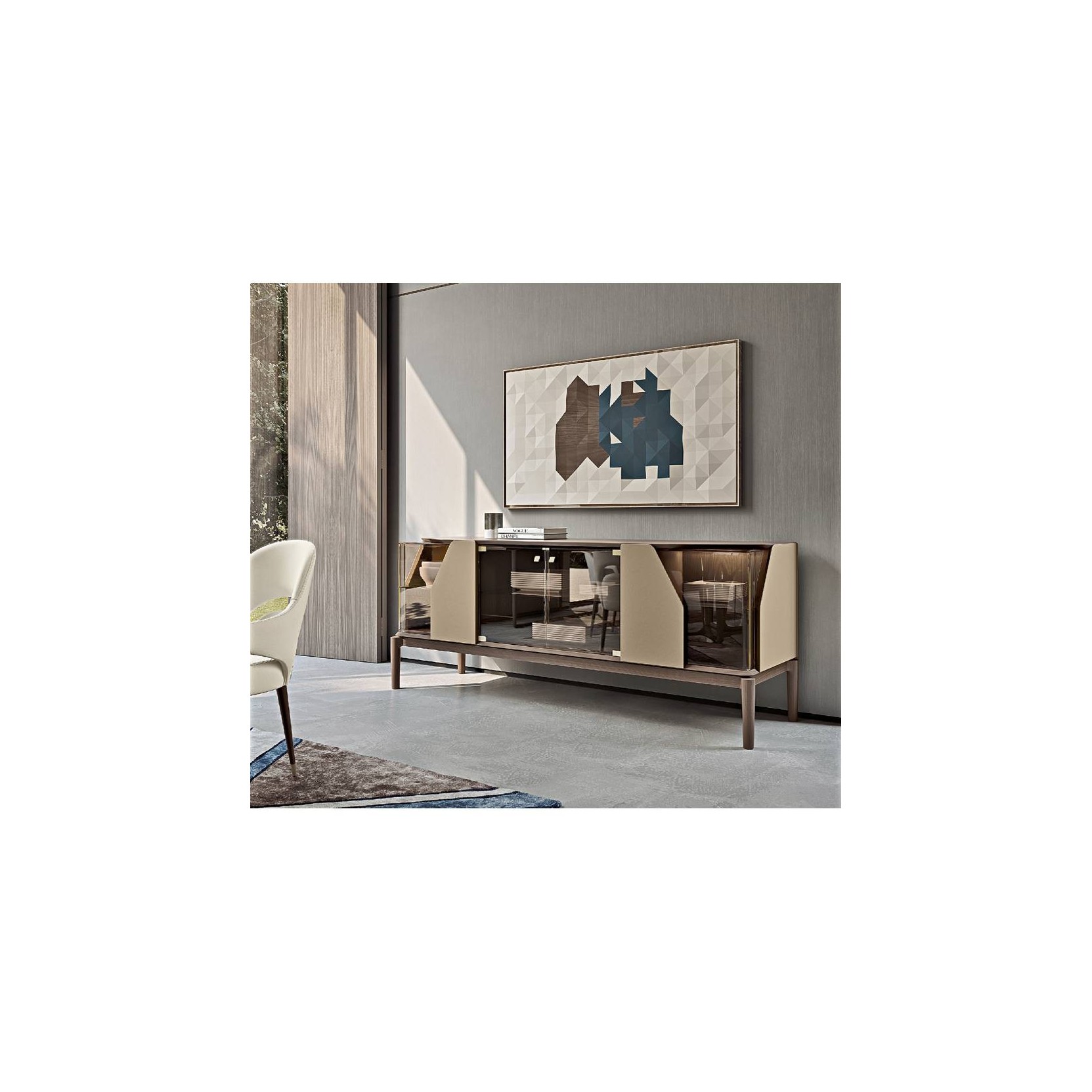 La credenza Vine è caratterizzata da una struttura in legno con elementi in vetro incastonati, un interessante gioco di volumi che crea pieni e vuoti architettonici. Applicazioni in pelle sulla struttura e sulle ante danno valore al mobile contenitore, dotato anche di illuminazione interna a LED. La credenza Vine è disponibile in diverse finiture come da campionario.Spedizione 5-6 settimane lavorative