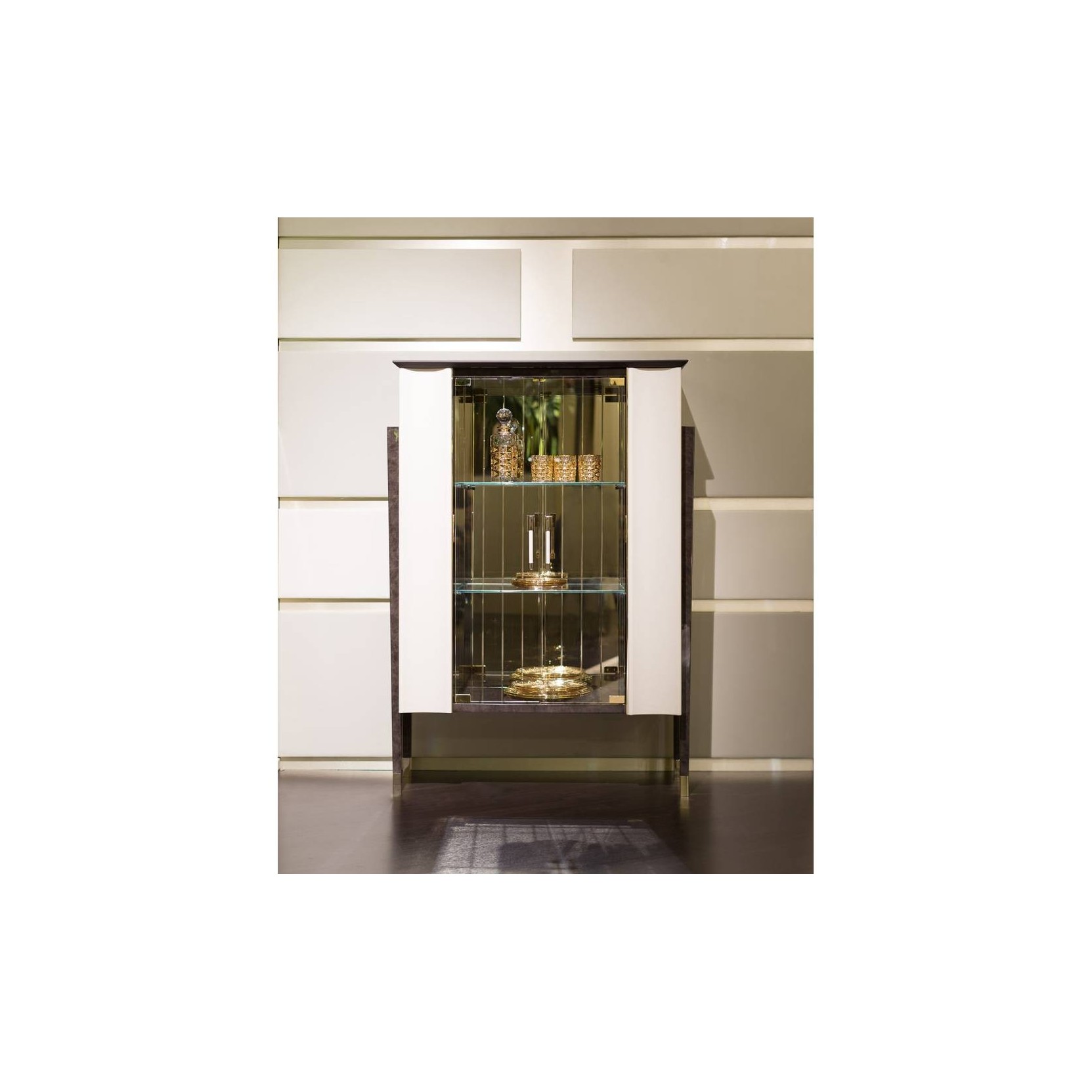 Il mobile bar della collezione Noir ha una struttura leggera sospesa, in legno finitura laccato lucido, applicazione in pelle ai lati e dettagli in metallo oro chiaro ne valorizzano la struttura. Le ante e i ripiani in vetro donano leggerezza a questo mobile contenitore adatto alla funzione di mobile bar, ma non solo. Il mobile bar Noir è disponibile in diverse finiture come da campionario.Spedizione 5-6 settimane lavorative