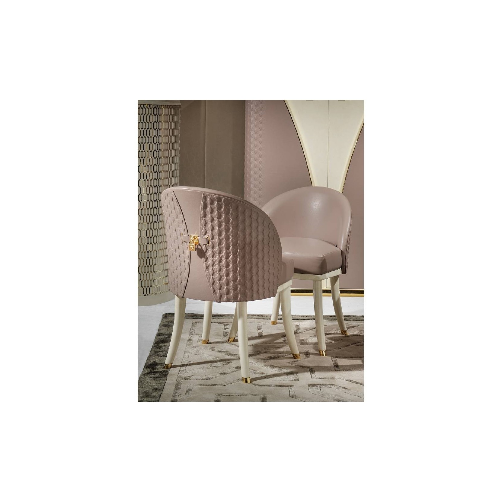 La sedia della collezione Vogue ha una struttura in legno finitura laccato lucido con chienale e seduta rivestiti in pelle. La sedia Vogue è personalizzabile scegliendo la versione con schienale alto o basso e selezionando il tipo di ricamo da applicare sul retro, a esagono oppure a diamante. Sul retro un lucchetto con fibbia esalta l’anima glamour di questa seduta. La sedia Vogue è disponibile in diverse finiture come da campionario.Spedizione 5-6 settimane lavorative