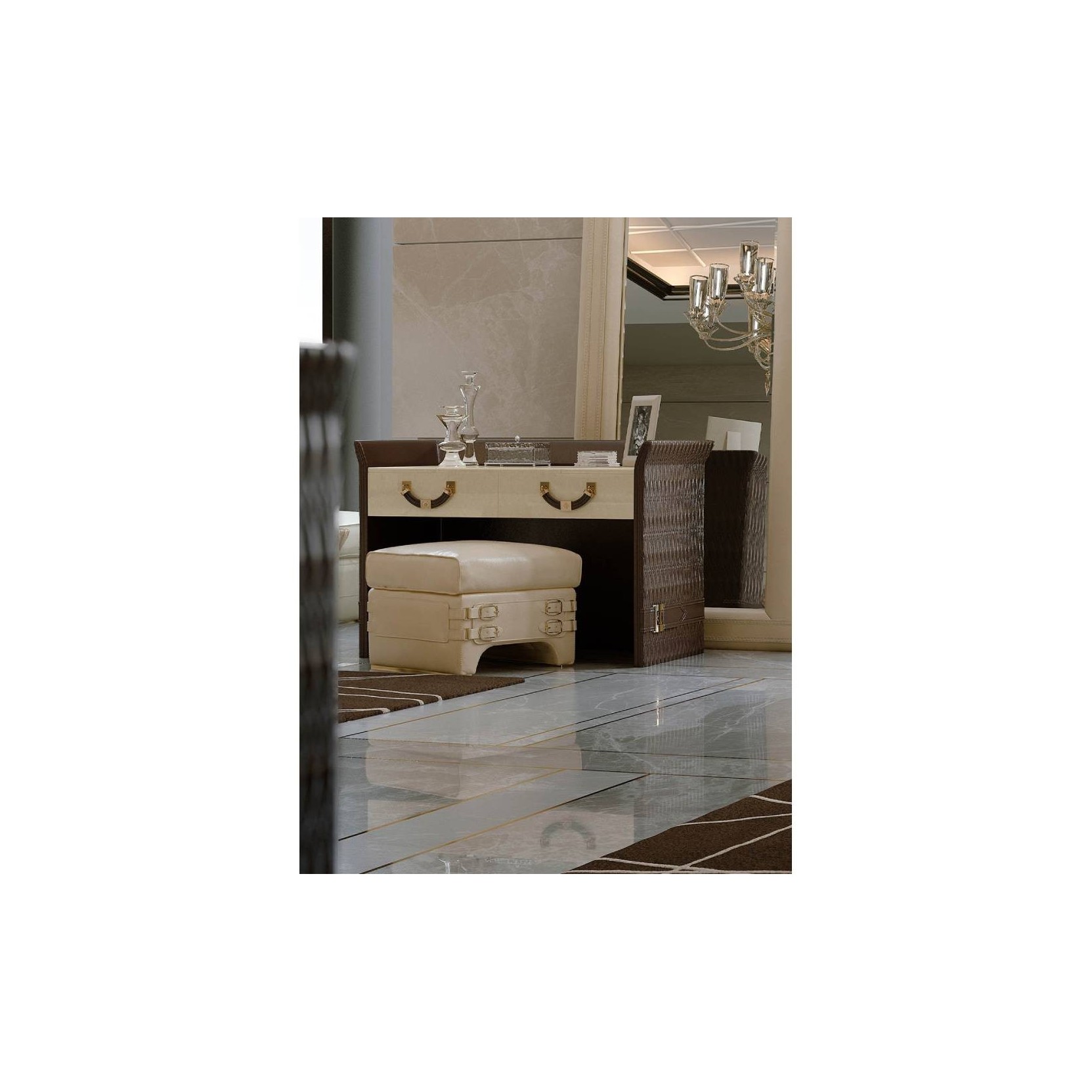 I pouf della collezione Numero Tre sono realizzati in due dimensioni in modo da adattarsi perfettamente a qualsiasi tipo di ambiente. I pouf sono totalmente rivestiti in pelle o tessuto abbinabili a contrasto, il soffice cuscino di seduta si contrappone alla base dalle linee decise, con applicazioni di dettagli metallici e fibbie. I pouf Numero Tre sono disponibili in diversi rivestimenti come da campionario.