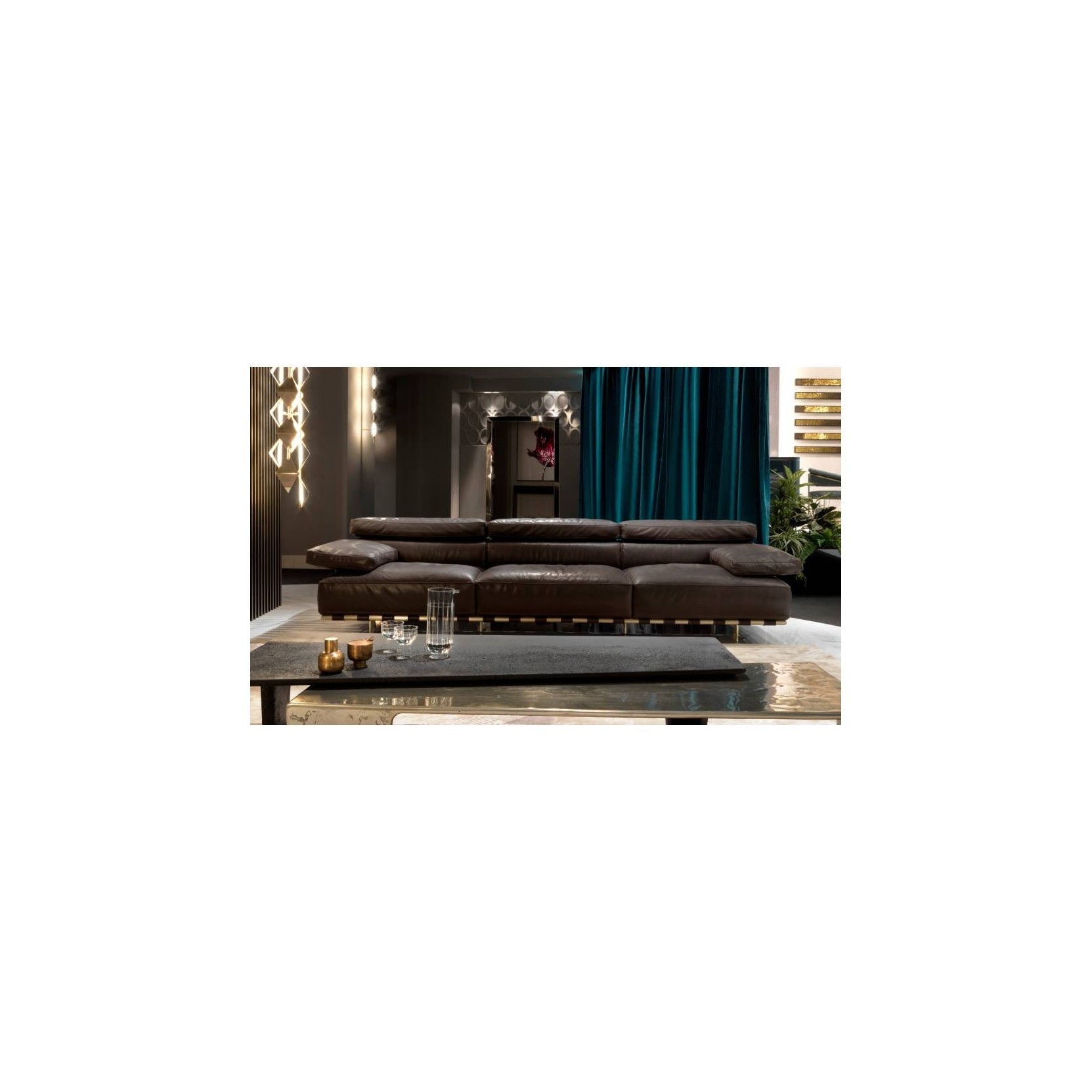 Montparnasse è un divano imbottito in pelle o tessuto. Struttura in legno con sistema di molle a cinghia elastica. Piedi in alluminio su cui è fissata una struttura in metallo a sezione tonda, decorazione sul perimetro con cinturini in pelle. Schienale posteriore in legno massello e multistrato imbottito con poliuretano ad alta densità. Poggiatesta imbottito in polietilene e fibra acrilica con struttura interna in metallo, reclinabile manualmente. Cuscini di seduta e braccioli in poliuretano, Memory Foam® e piuma. Se rivestiti in tessuto, tubazioni e cinturini sono in morbida pelle.Spedizione 5-6 settimane lavorative